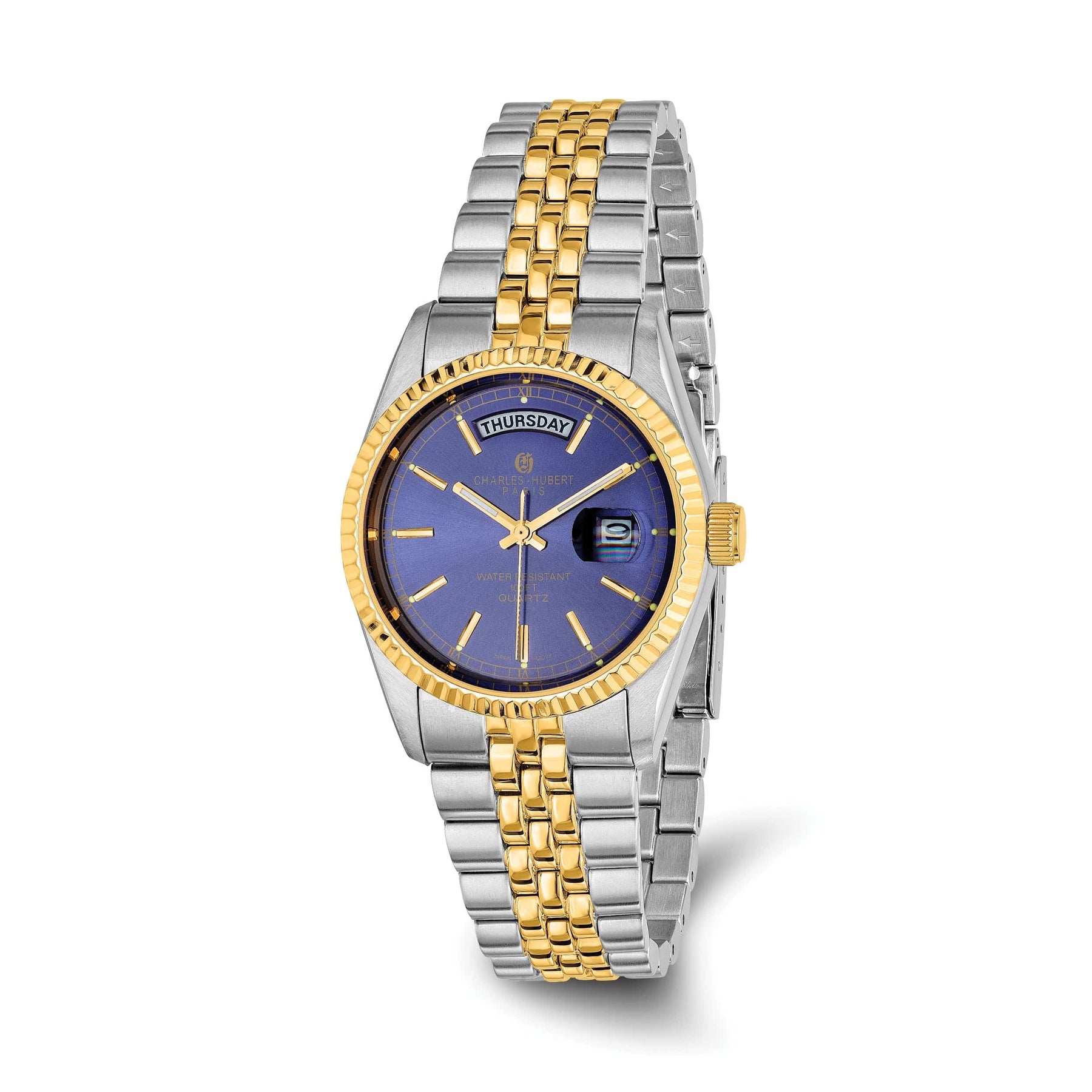Charles Hubert Mens Bold Two-tone SS Blue Dial Polished Watch