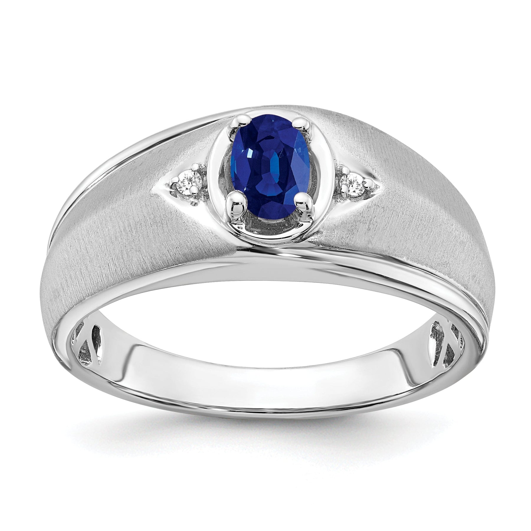 Add a touch of sophistication and luxury to your wardrobe with our stunning 14k White Gold Oval Sapphire and Diamond Men's Ring. Crafted from durable 14k White Gold and plated with Rhodium for a brilliant shine, this ring is a true masterpiece.