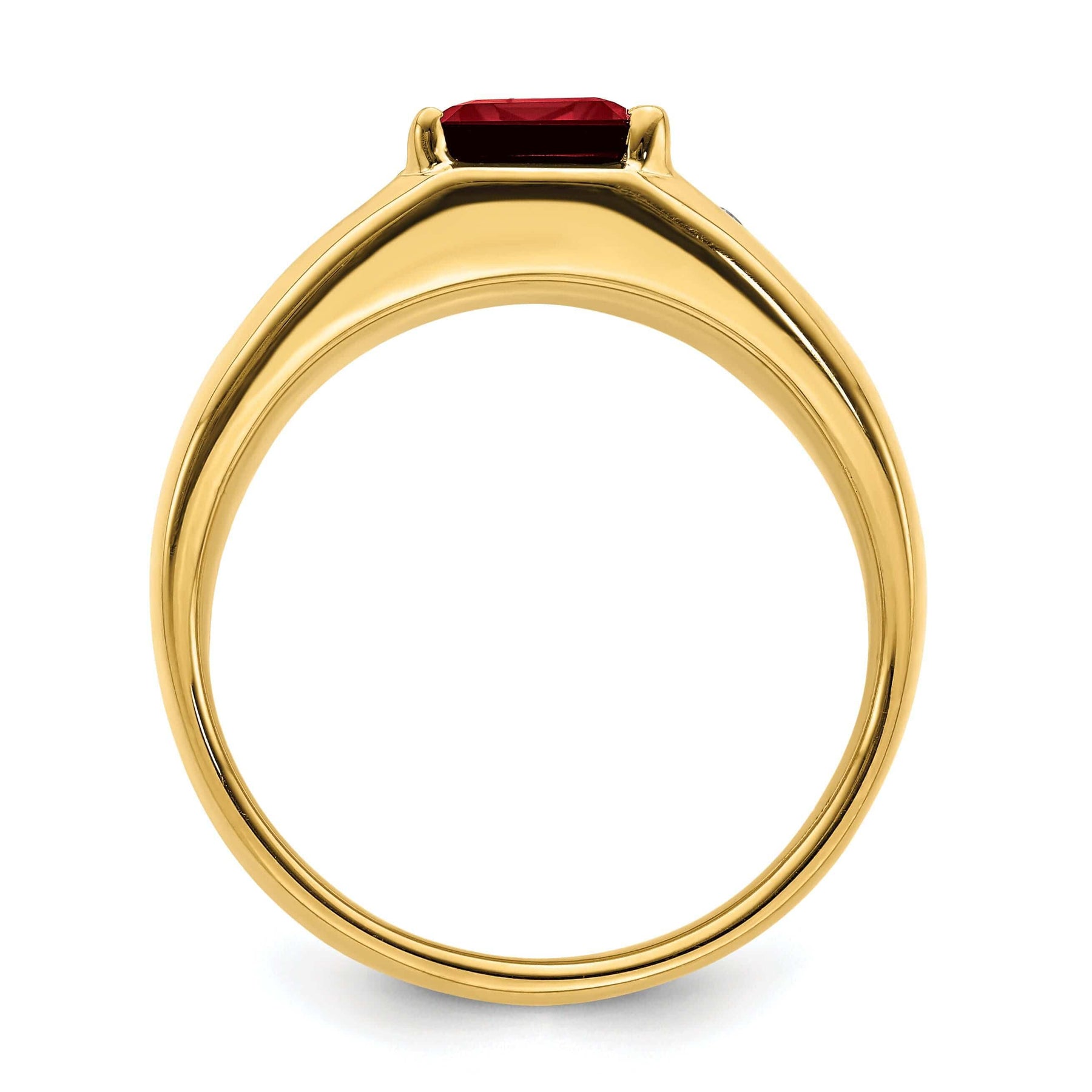 Whether you're looking to treat yourself or find the perfect gift for a special man in your life, this 14k Yellow Gold Emerald Cut Created Ruby, Diamond Men's Ring is sure to impress. Elevate your style with this elegant and sophisticated piece that will stand the test of time.
