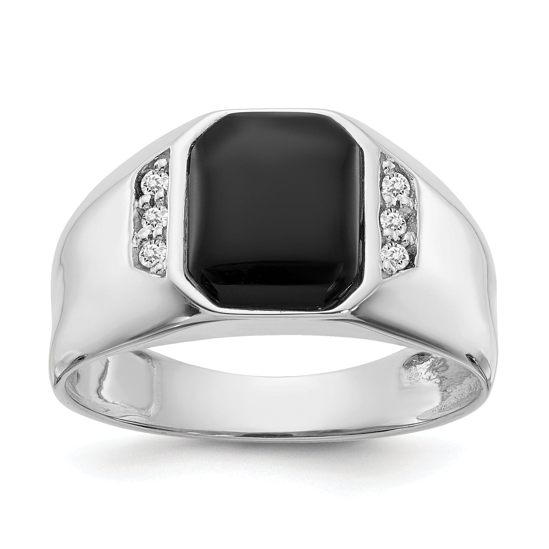 Lovely Rita's Ring 14k White Gold Polished Men's Onyx Diamond Ring