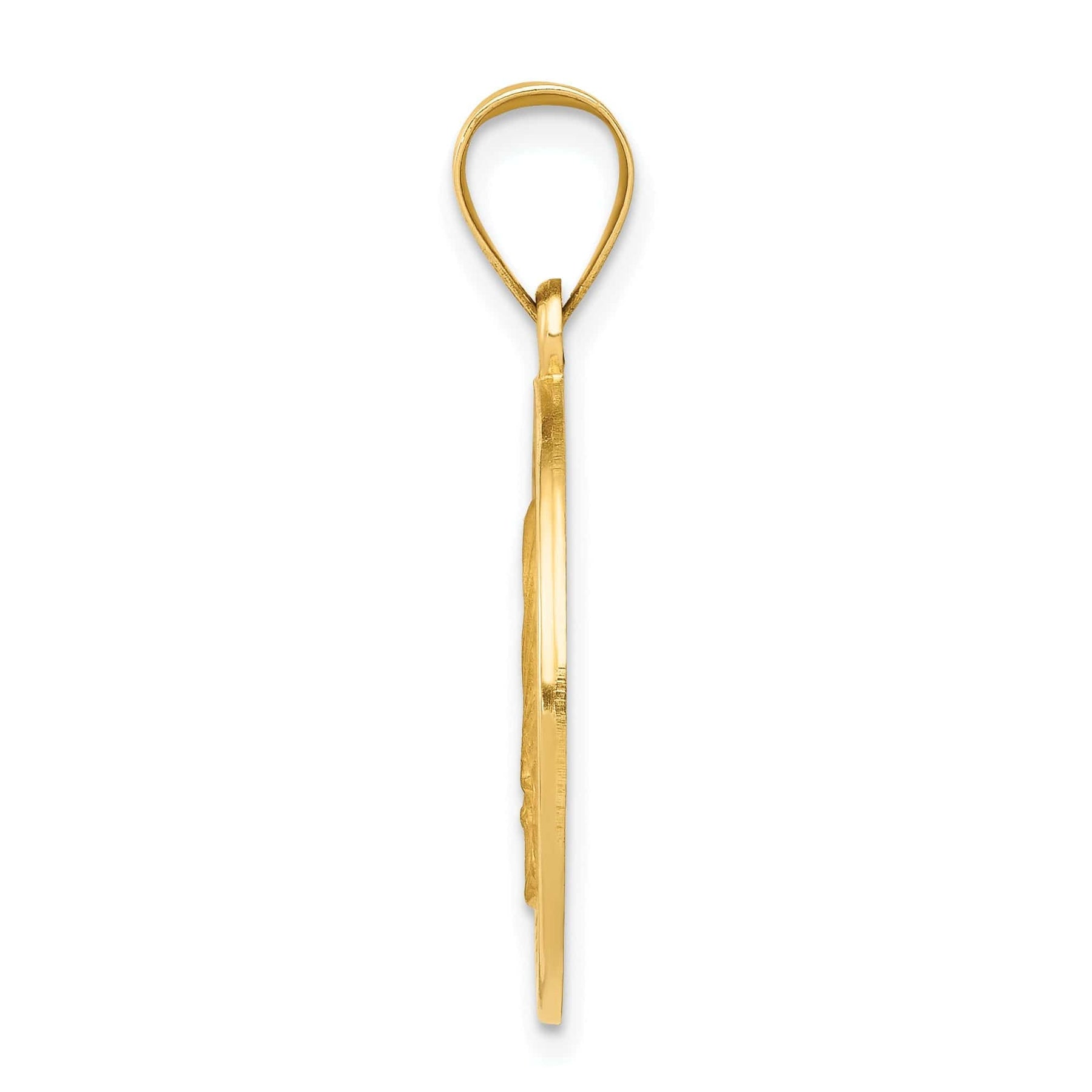 Elevate your spiritual jewelry collection with our stunning 14k Yellow Gold Mother Teresa Medal Pendant. Crafted from hollow 14k yellow gold with a polished and satin finish, this round pendant radiates elegance and grace.