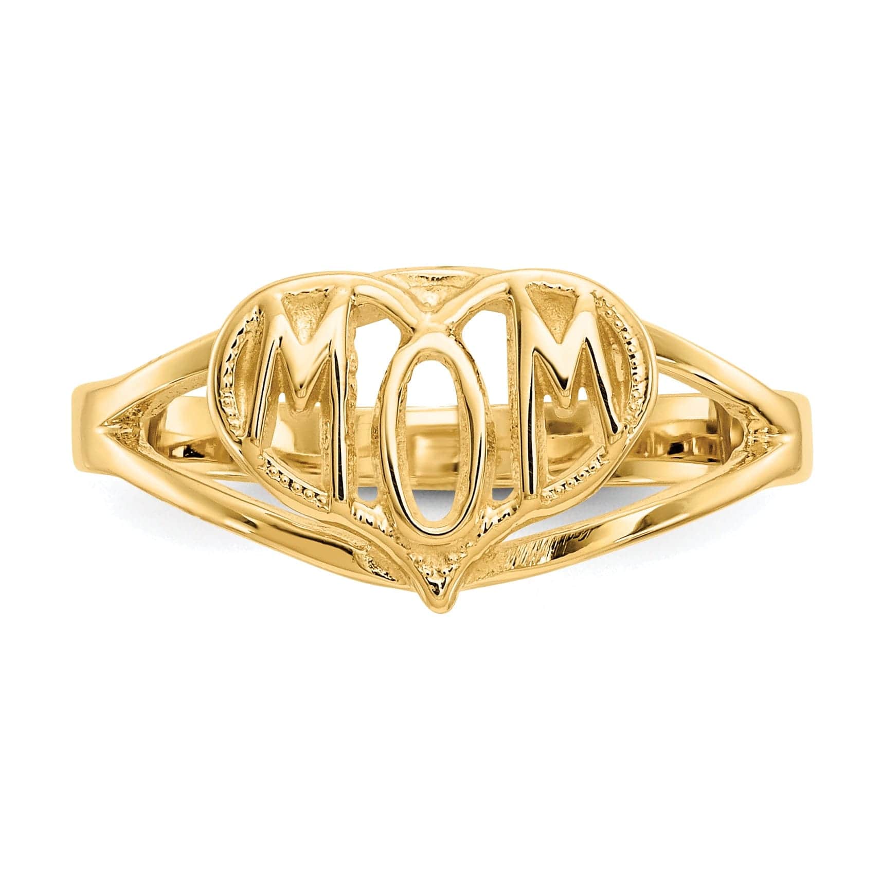 Celebrate the special bond between a mother and her child with our stunning 14k Yellow Gold Polished 'Mom' Heart Ring. Crafted from luxurious 14k yellow gold, this ring is a timeless piece that will be cherished for years to come.