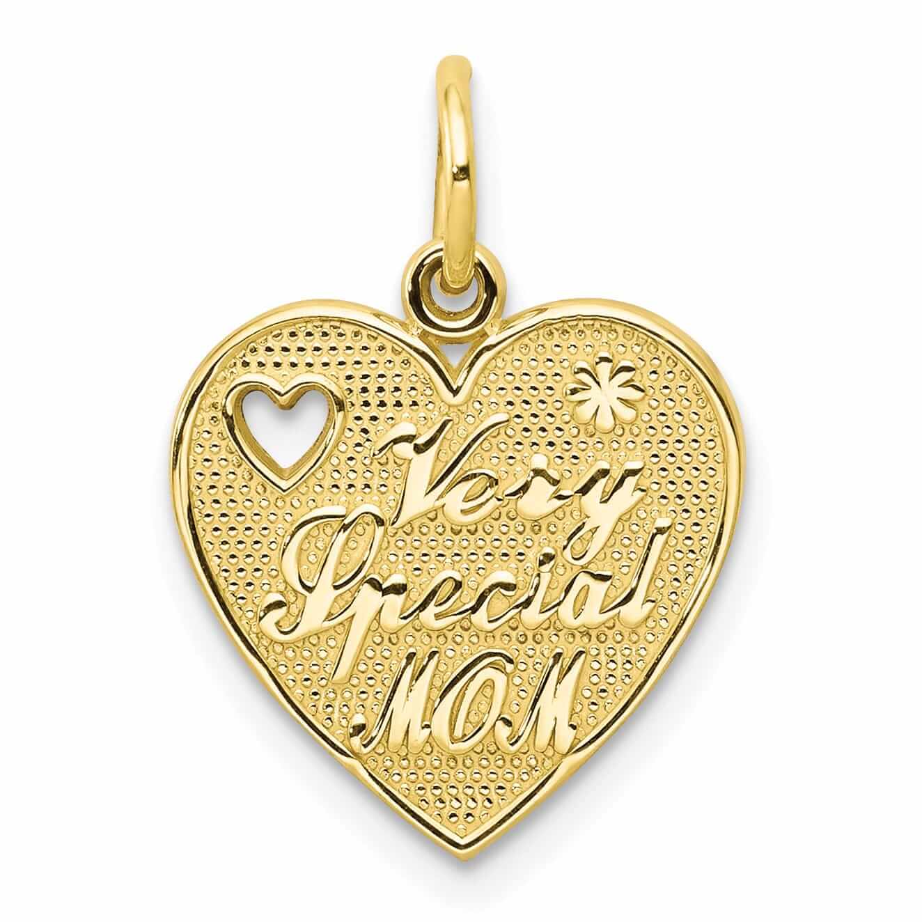 Made from high-quality 10k yellow gold, this pendant has an average weight of 1.15 grams and a width of 21mm, making it the perfect size to wear every day or for special occasions. Whether you're looking for a gift for Mother's Day, a birthday, or just because, this Very Special Mom Heart Pendant is sure to put a smile on her face.