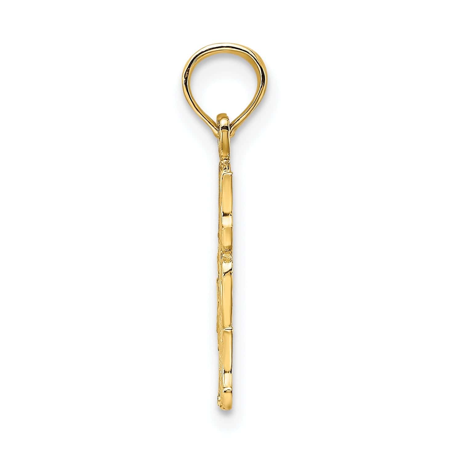 14K Yellow Gold Textured Polished Finish Solid #1 MOM Script Design Charm Pendant