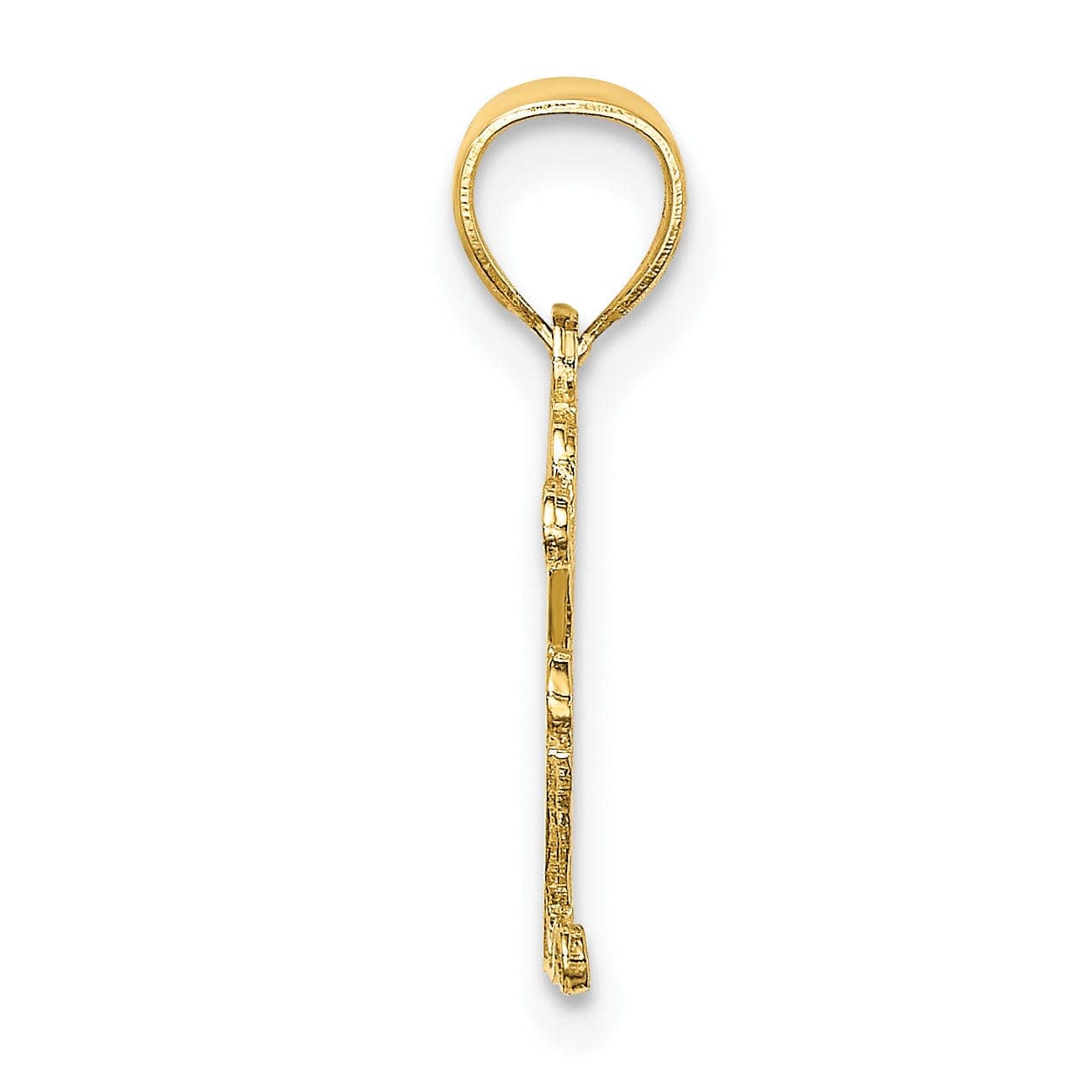 14k Yellow Gold Solid Textured Polished Finish BEST MOM Script Design Charm Pendant