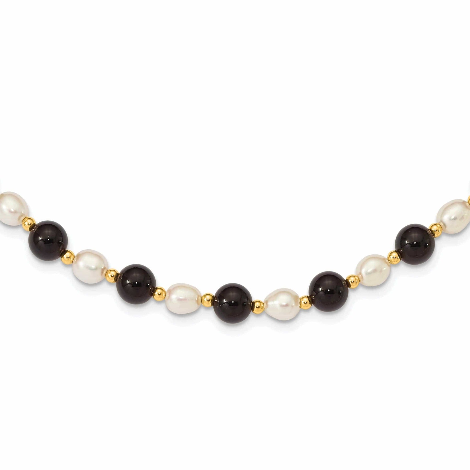 14k Gold Fancy White Cultured Pearl Onyx Necklace