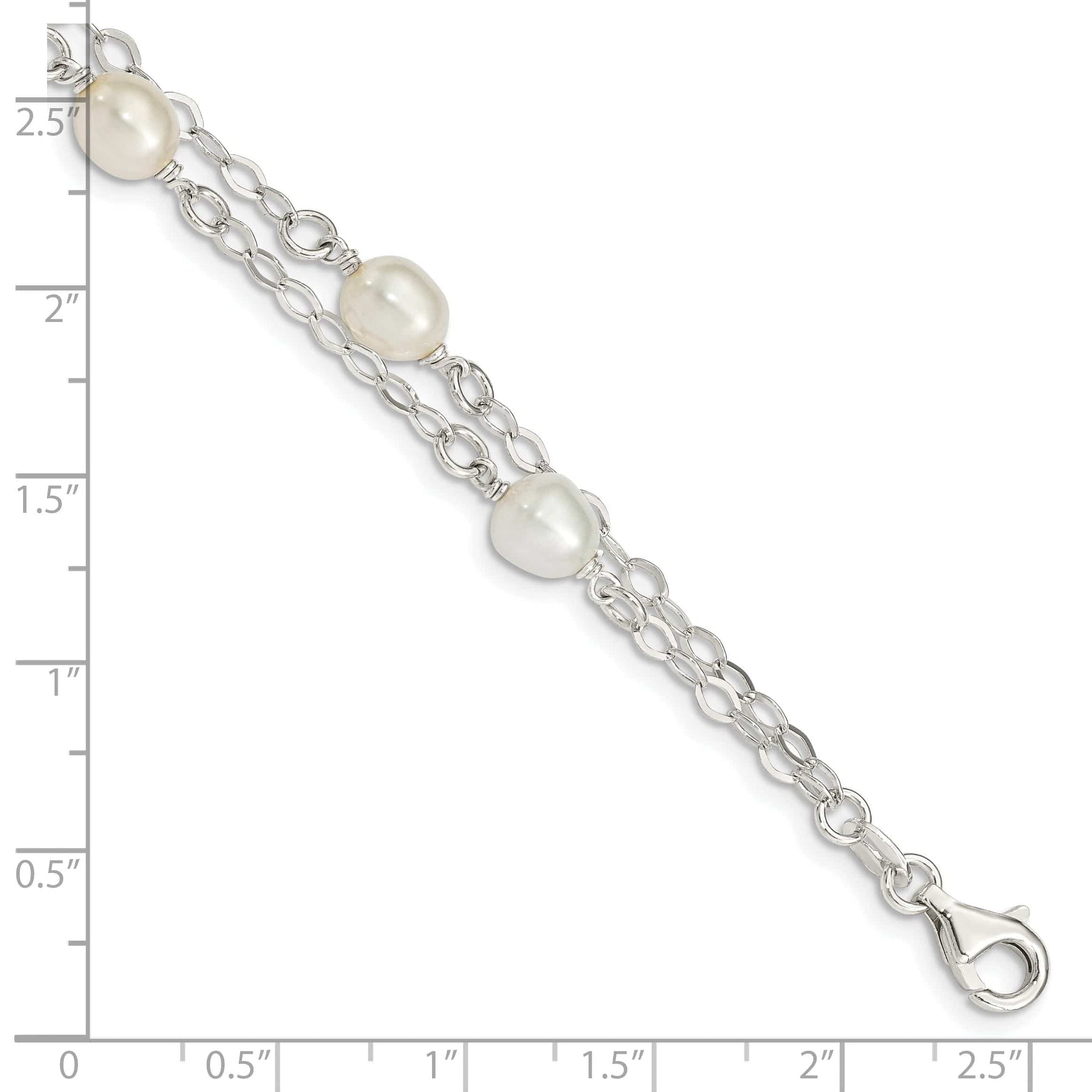 Introducing our beautifully crafted Sterling Silver 2 Strand Fresh Water Pearl Bracelet. This exquisite piece features a polished finish and is adorned with lustrous and elegant fresh water cultured pearls. The bracelet measures 7.50 inches in length, creating a stunning double strand design that adds a touch of sophistication to any outfit.
