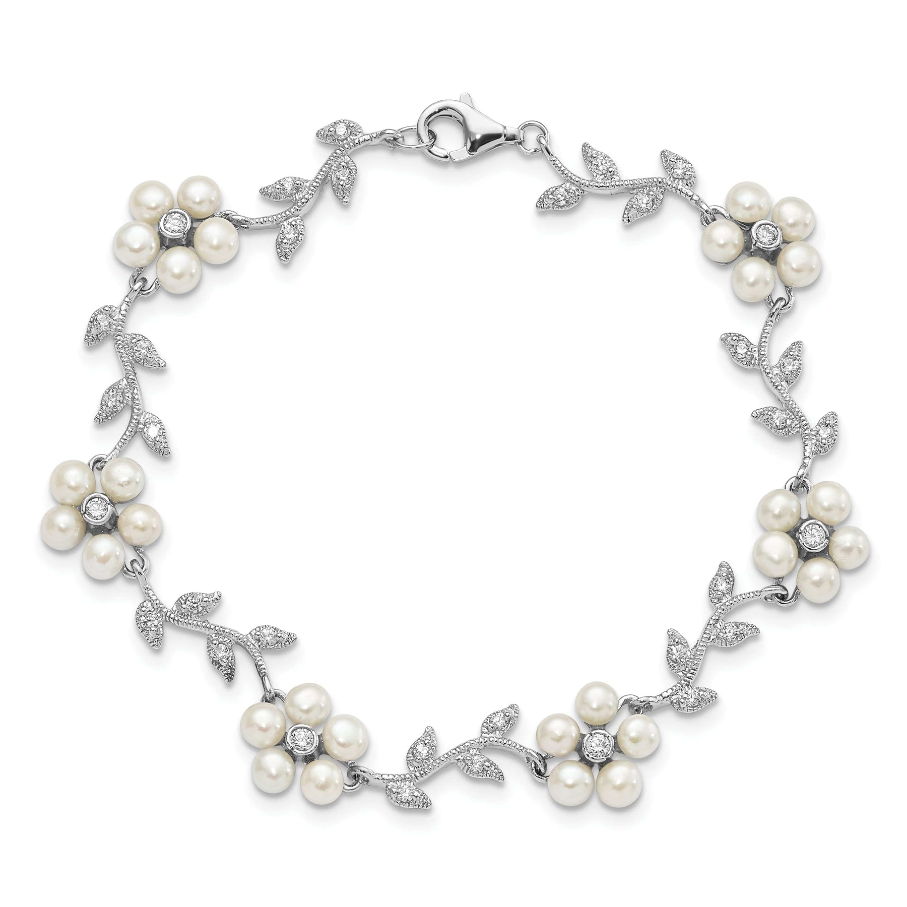 Silver Fresh Water Pearl C.Z Floral Bracelet