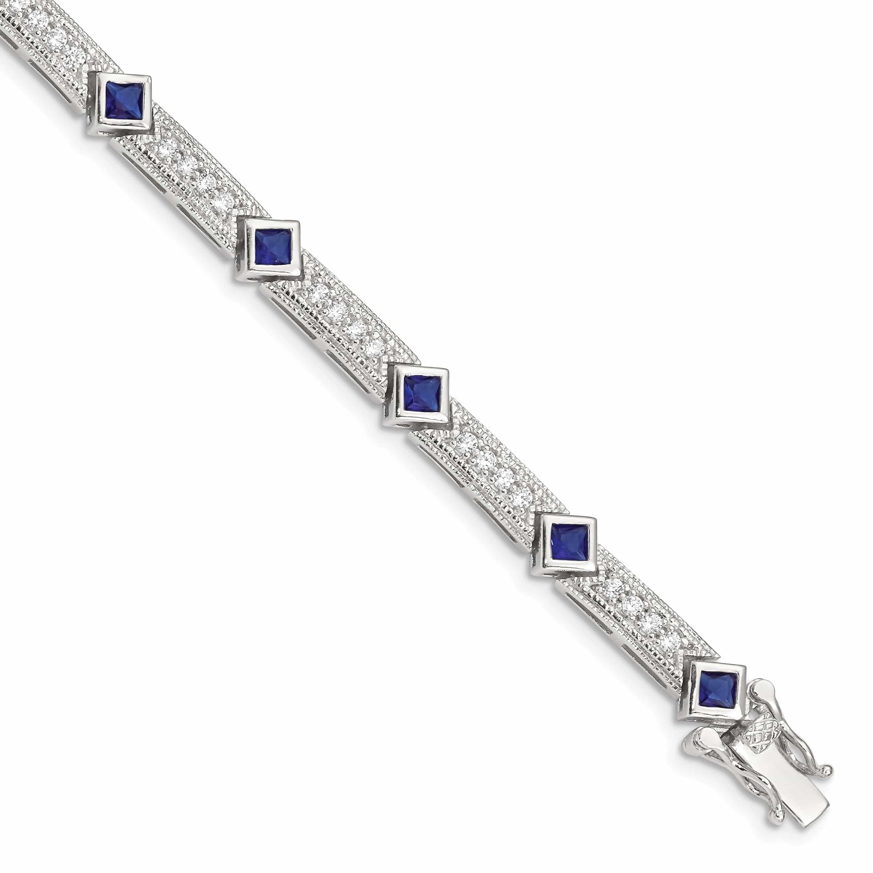 Treat yourself or a loved one to this exquisite piece of jewelry and add a touch of sophistication to any look. This bracelet also makes a thoughtful gift for birthdays, anniversaries, or any other special occasion. Make a lasting impression with our Silver Polished Blue and Clear C.Z Bracelet.