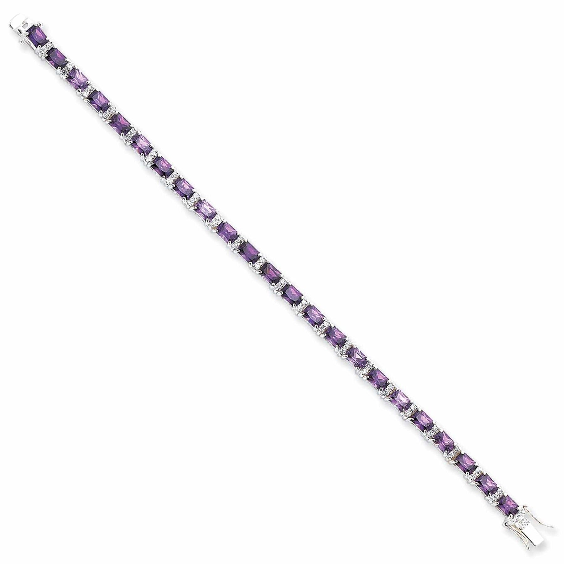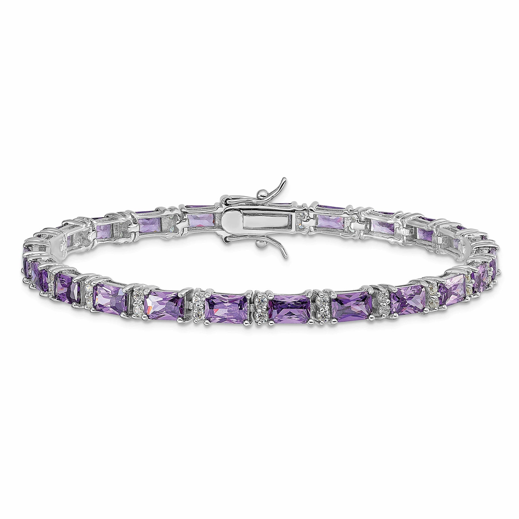 This exquisite bracelet also makes a thoughtful gift for a special someone. Whether you're treating yourself or presenting it to a loved one, the Sterling Silver Polished Finish Purple and Clear Cubic Zirconia Bracelet is sure to impress. Add a touch of elegance and sophistication to your style with this timeless piece of jewelry.