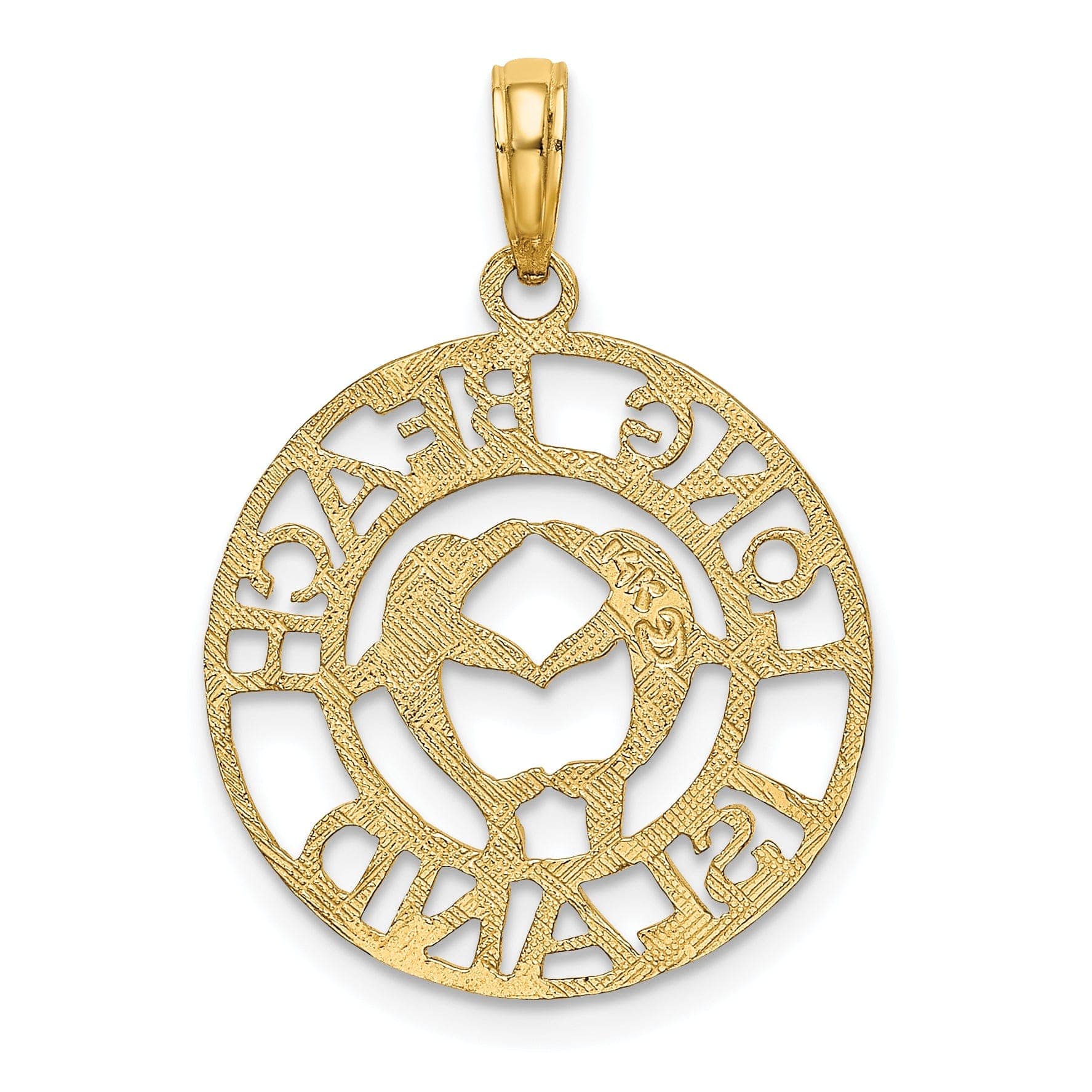 14K Yellow Gold Polished Finish LONG BEACH ISLAND with Double Dolphins Design Charm Pendant
