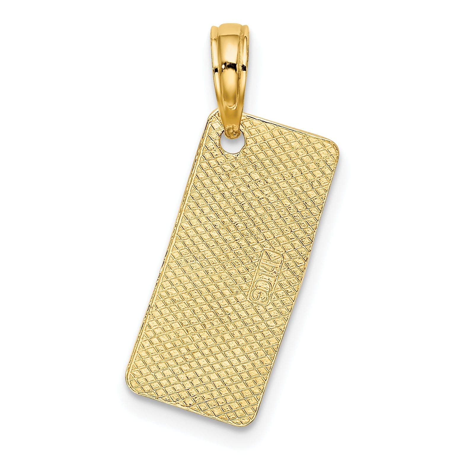 Add a touch of coastal charm to your jewelry collection with the 14K Yellow Gold Polished Texture Finish NEW JERSEY-LBI (Long Beach Island) License Plate Charm Pendant. It's a timeless piece that will remind you of sunny days spent by the shore for years to come.