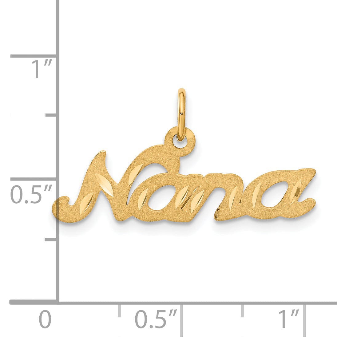14k Yellow Gold Brush Diamond Cut Finish NANA Script Pendant