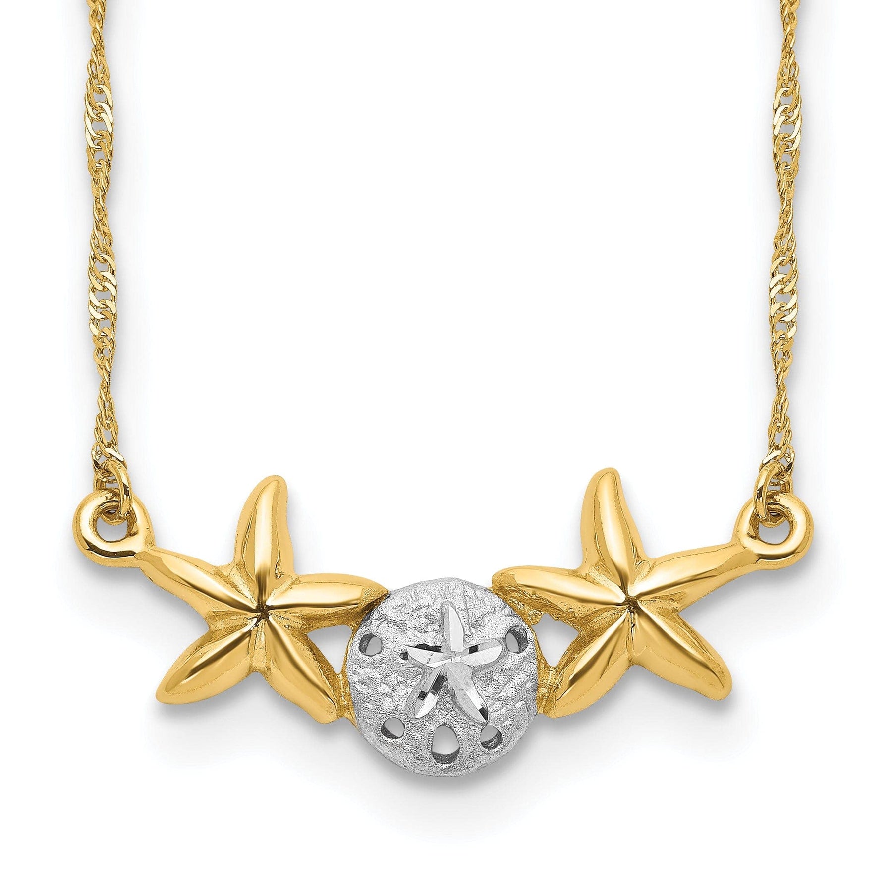 Lovely Rita's Pendants & Charms 14K Yellow Gold, White Rhodium Brushed, Polished Finish Sand Dollar, Starfish Pendant Design in a 18-inch Cable Chain Necklace Set