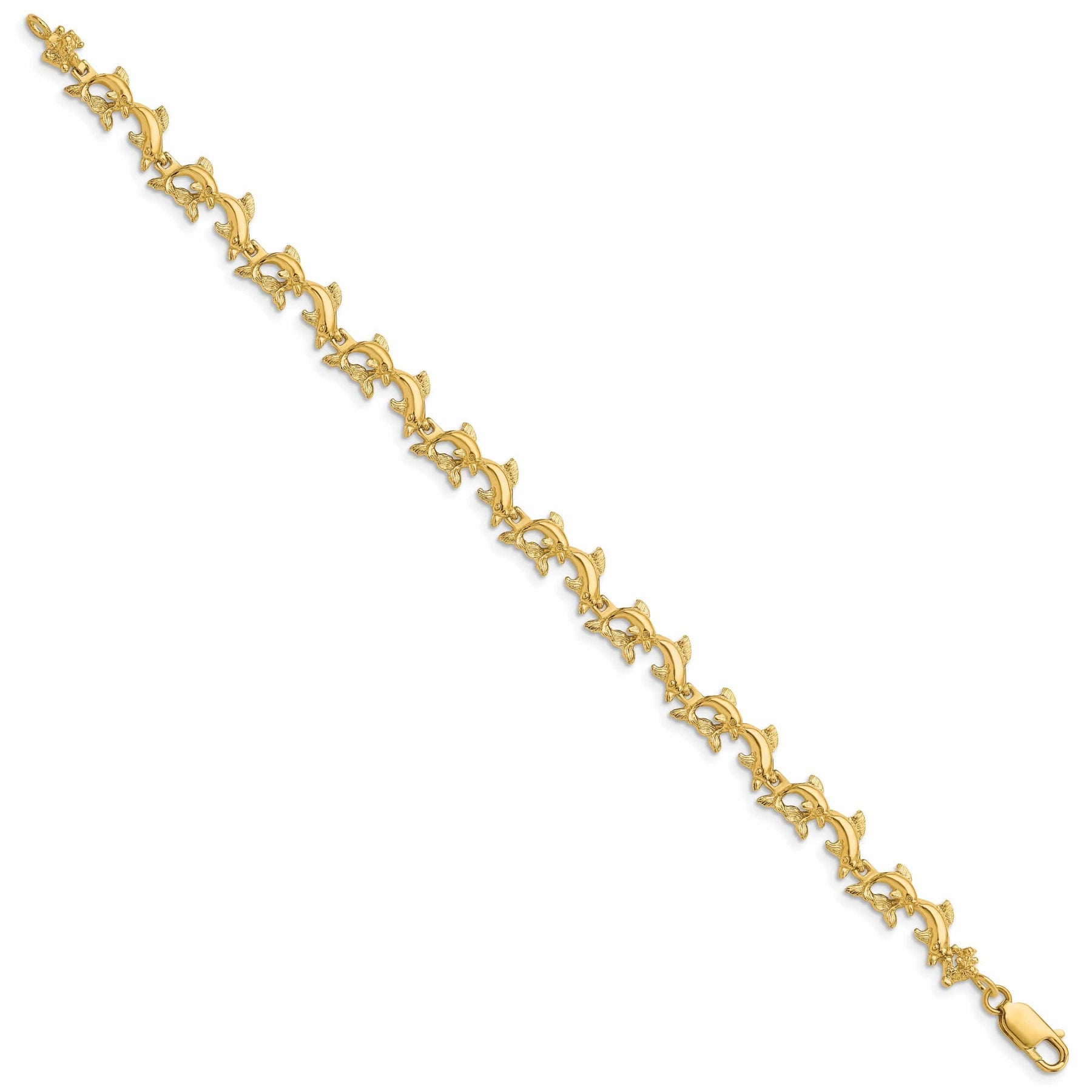 14k Yellow Gold Dolphin Bracelet - 7.25 inch, 6.22-mm wide