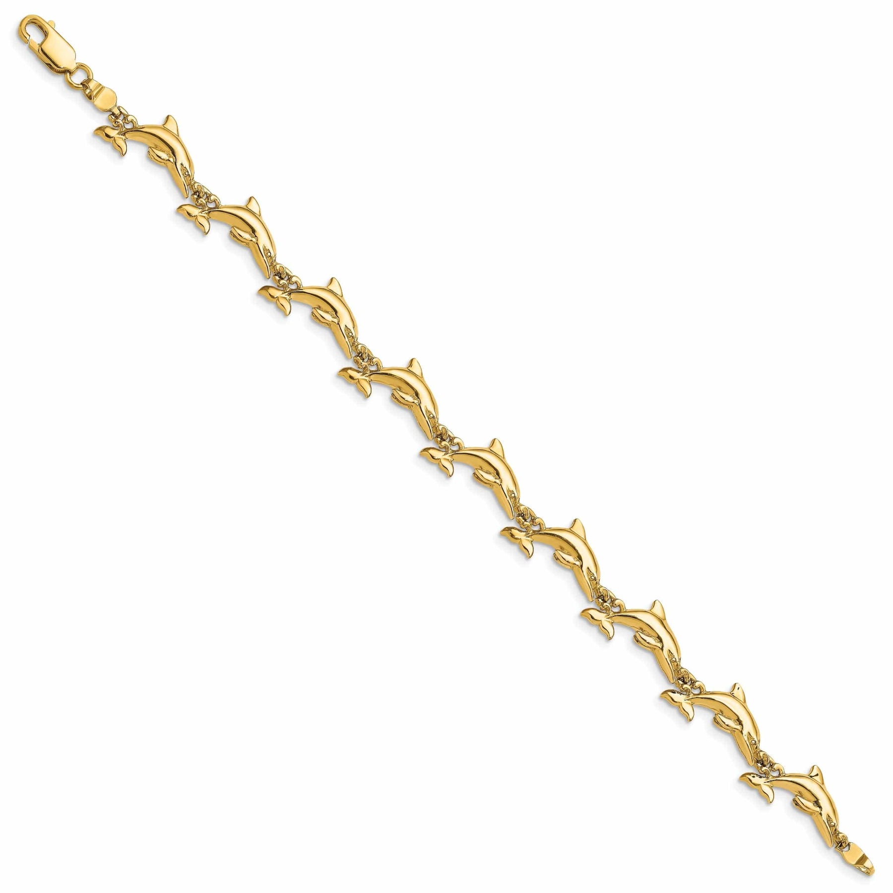 Lovely Rita's Bracelets 14k Yellow Gold Dolphin Bracelet - 7. inch, 7-mm wide