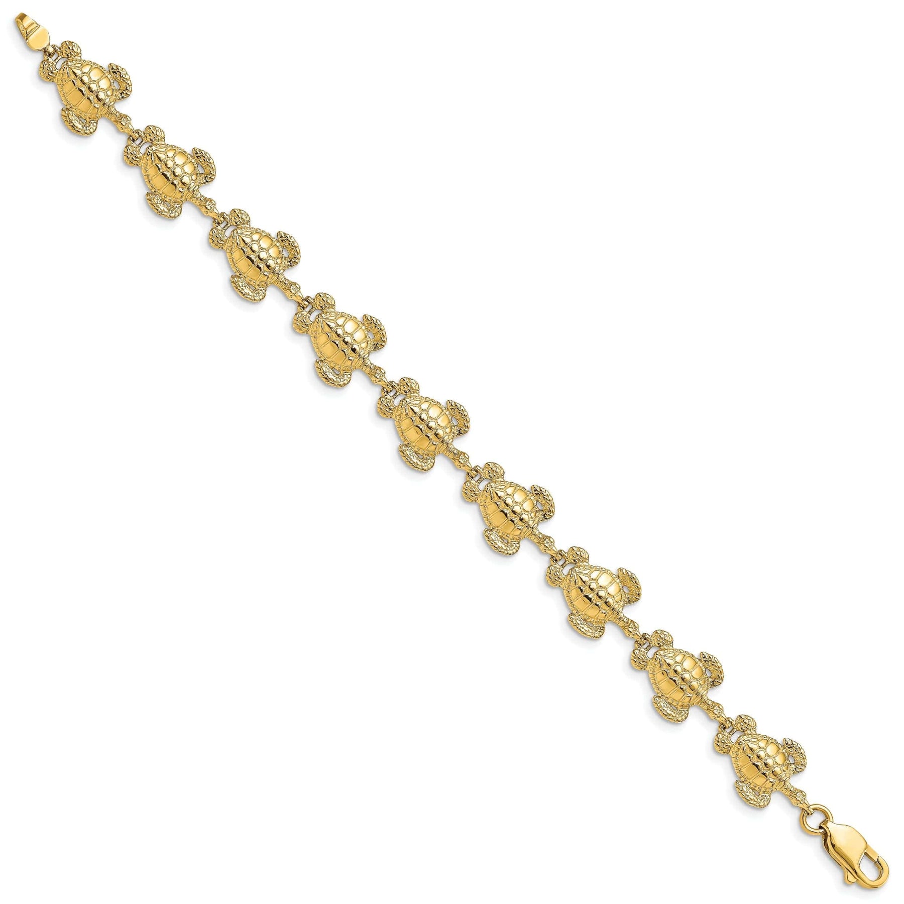 14k Yellow Gold Sea Turtle Bracelet. Polished finish, 12mm width, 7.25" length