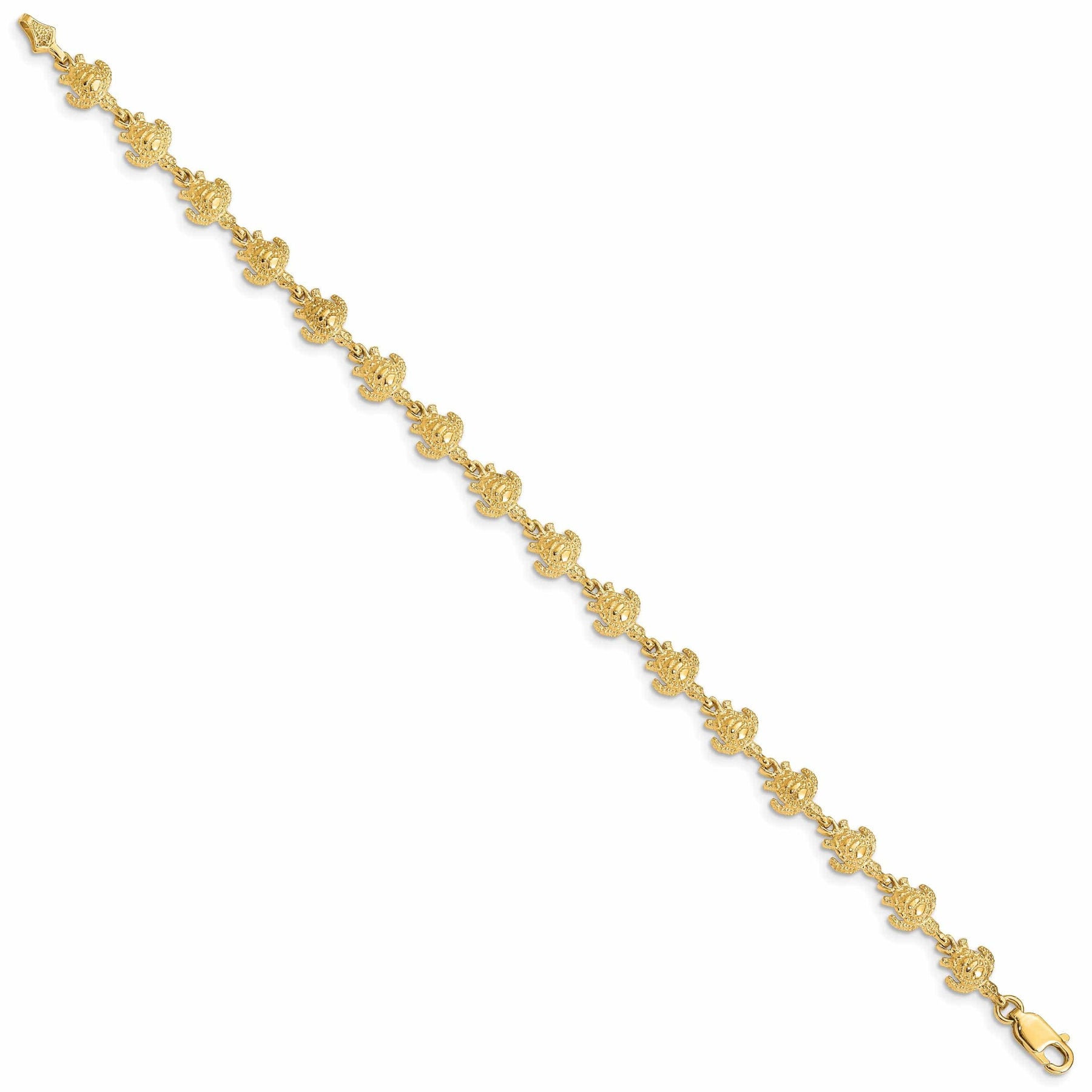14k Yellow Gold Sea Turtle Bracelet. Polished finish, 7mm width, 7" length