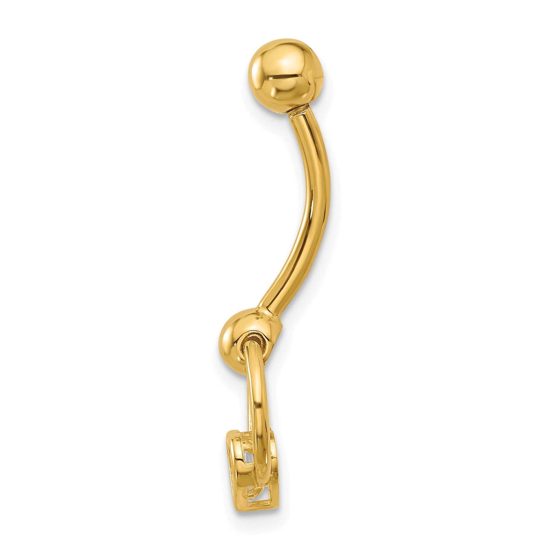 Lovely Rita's Body Jewelry 14k Gauge Polished CZ Heart Dangle Navel/Belly Ring
