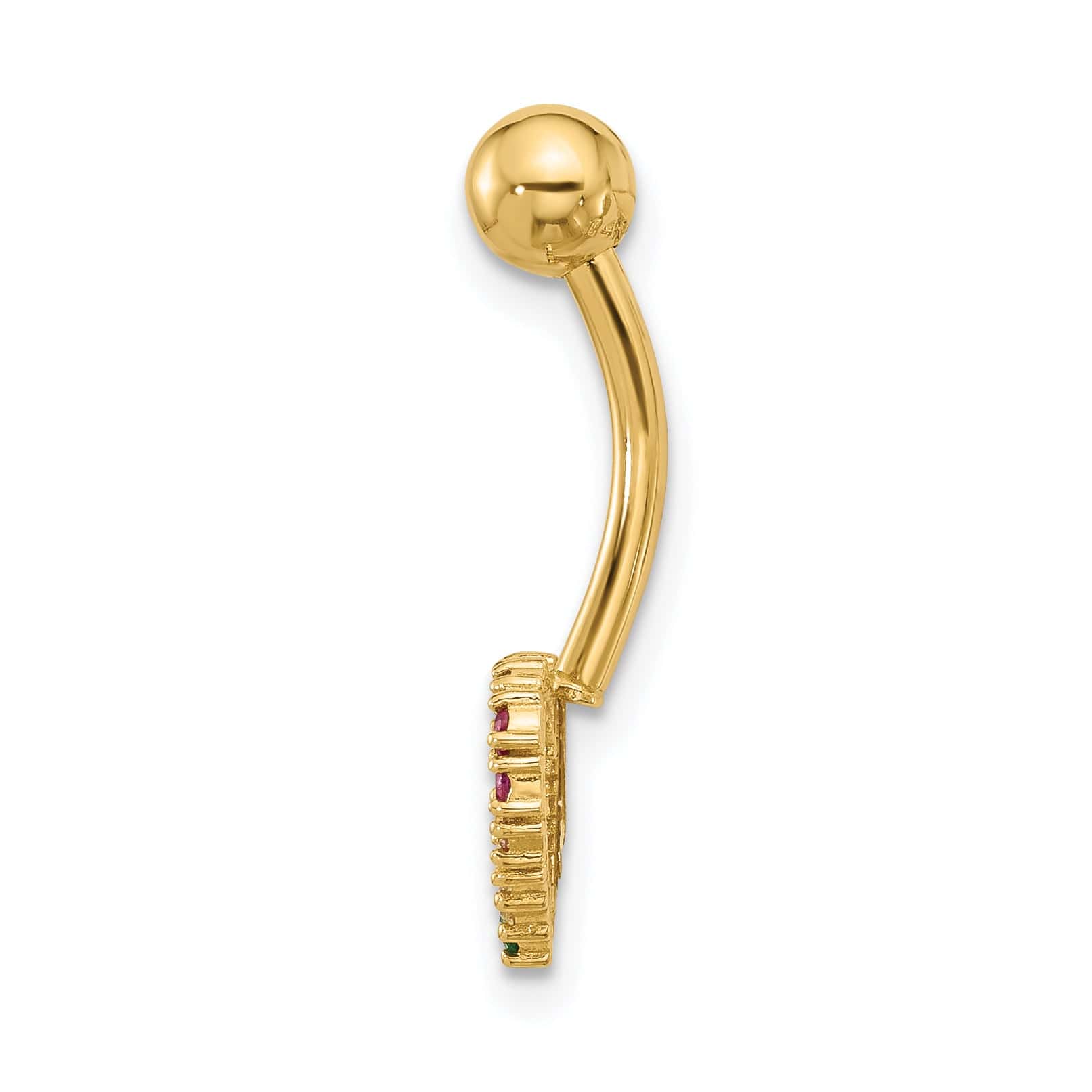 Add a touch of glamour and sophistication to your belly button piercing with our stunning 14k Gauge Polished Rainbow CZ Heart Belly/Navel Ring. Crafted from high-quality 14K yellow gold, this belly ring features a polished finish for a sleek and elegant look.