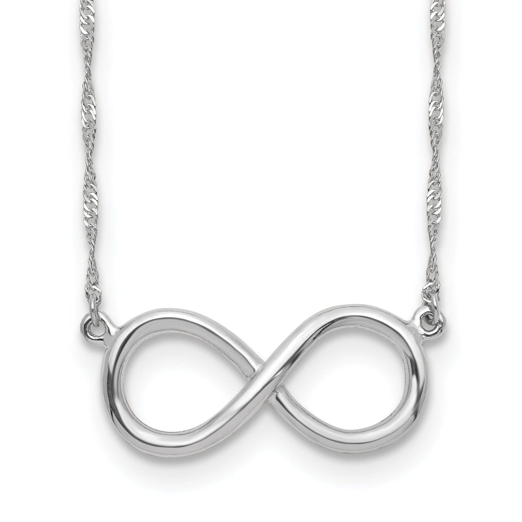 14K White Polished Finish Infinity Design Pendant in a 16.75-Inch Singapore Chain Necklace Set