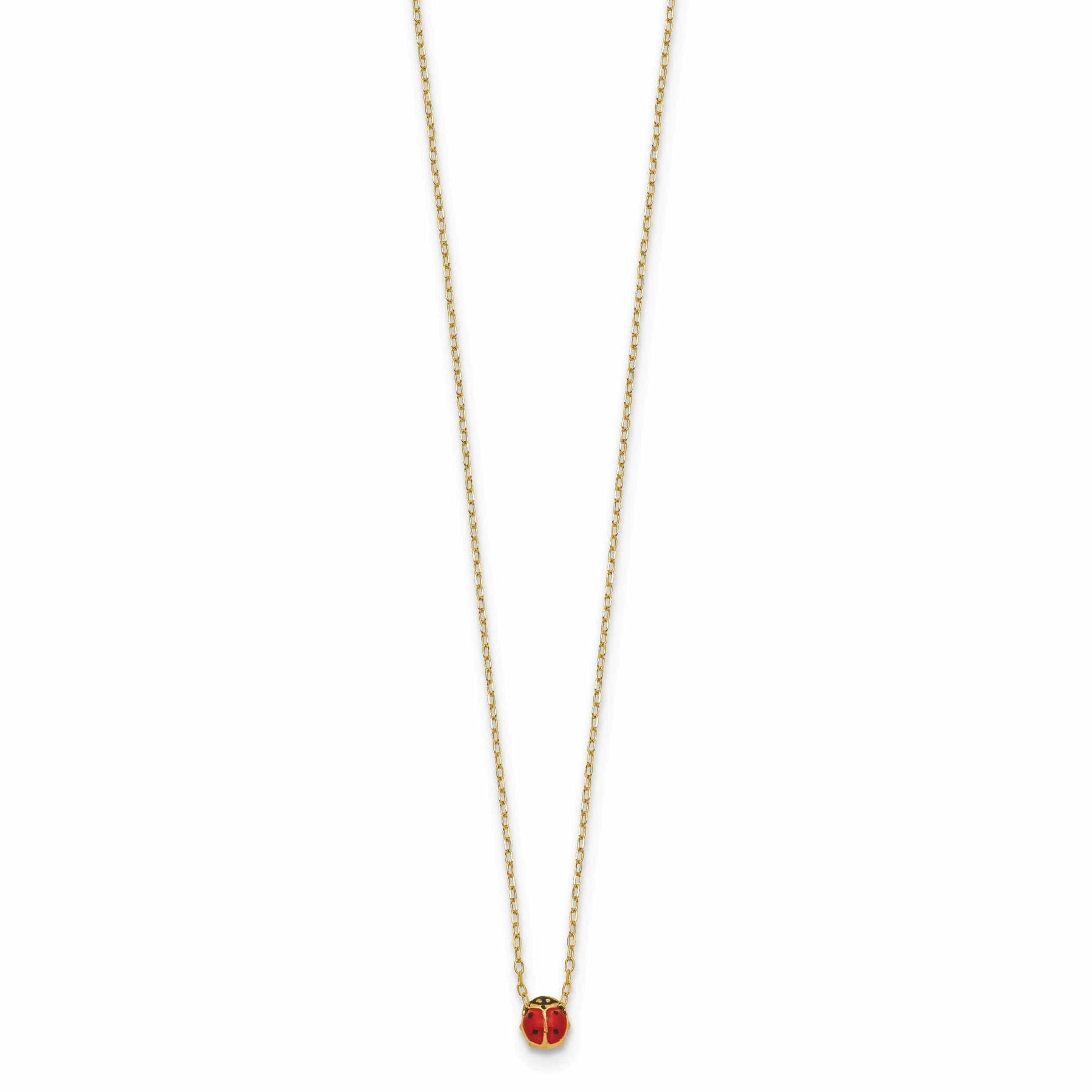 This 14k Yellow Gold Polished Red, Black Enameled Finish Small Size Hollow Ladybug Pendant in a 16.5-inch Cable Chain Necklace Set makes a wonderful gift for yourself or a loved one. It's a versatile piece that can be dressed up or down, making it a great addition to any jewelry wardrobe. Treat yourself to this charming ladybug necklace set today and add a touch of whimsy to your style!