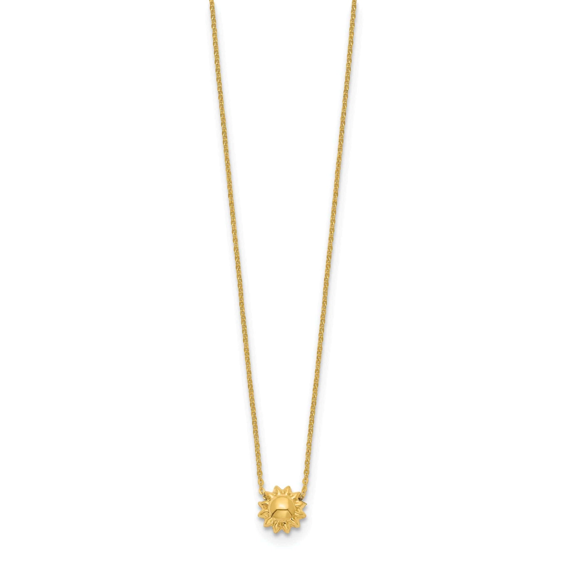 14k Yellow Gold Semi-Solid Polished Finish 3-Dimensional Puffed Sun Style Pendant in a 16.5-Inch Cable Chain Necklace Set