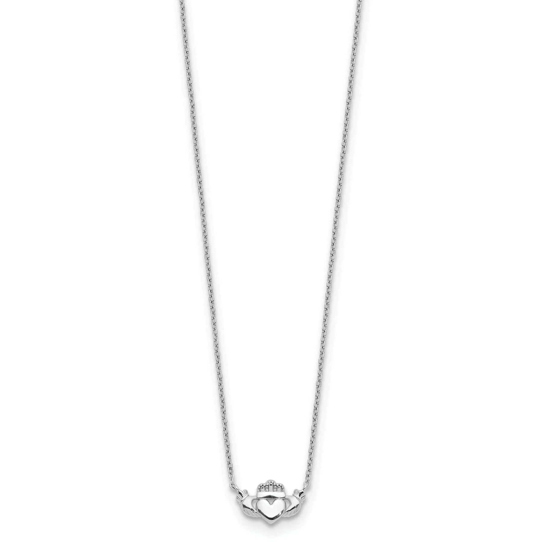 14K White Gold Claddagh Pendant Design 17-inch Cable Chain Necklace Set