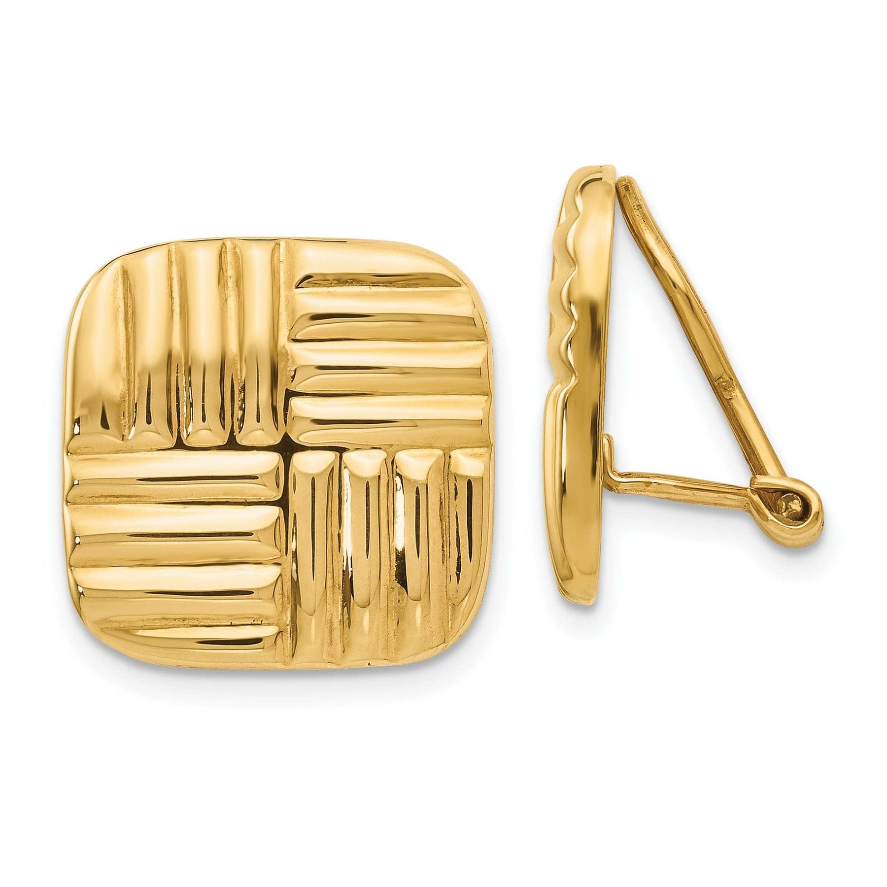 Whether you're dressing up for a special occasion or simply adding a touch of glamour to your everyday look, these earrings are sure to draw compliments wherever you go. Treat yourself or a loved one to these beautiful 14k Yellow Gold Non-pierced Basket weave Earrings today and elevate your style to new heights.