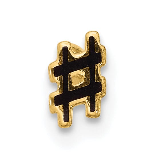 Introducing our stunning 14k 18 Gauge Polished Enameled Hashtag Cartilage Stud, crafted from high-quality 14K yellow gold. This exquisite cartilage stud features a sleek polished finish, adding a touch of sophistication to any look. With its solid durability, you can trust that this stud will stand the test of time.