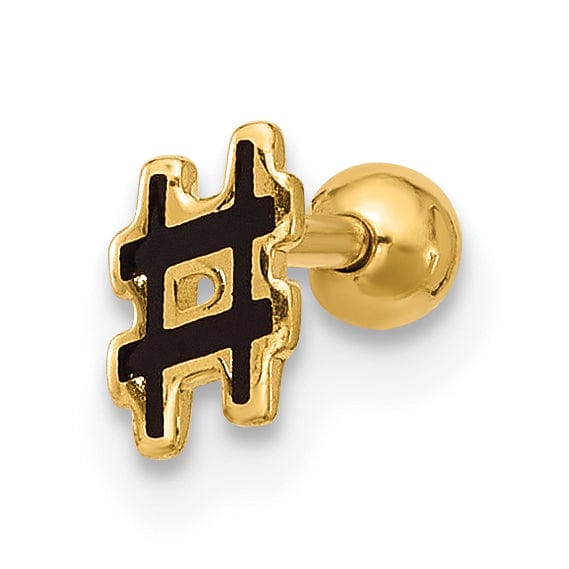 14k 18 Gauge Polished Enameled Hashtag Cartilage Stud