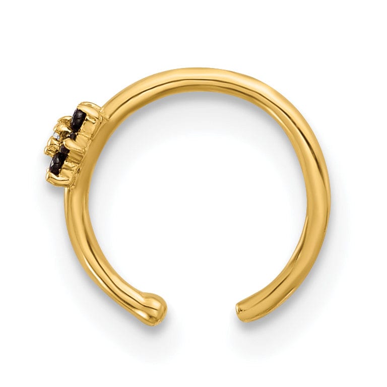 Introducing our stunning 14K 20 Gauge Polished Black and White CZ Flower Nose Ring. Crafted from high-quality 14K yellow gold, this nose ring is not only durable and solid, but also incredibly elegant and stylish. The polished finish adds a touch of sophistication, making it the perfect accessory for any occasion.