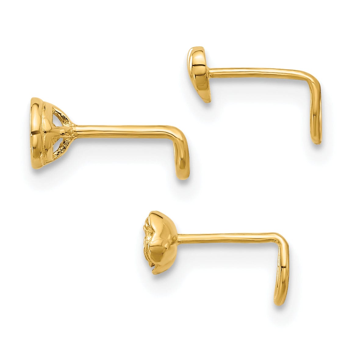 14k Yellow Gold 22 Gauge CZ, Flower and Heart Nose Ring Set