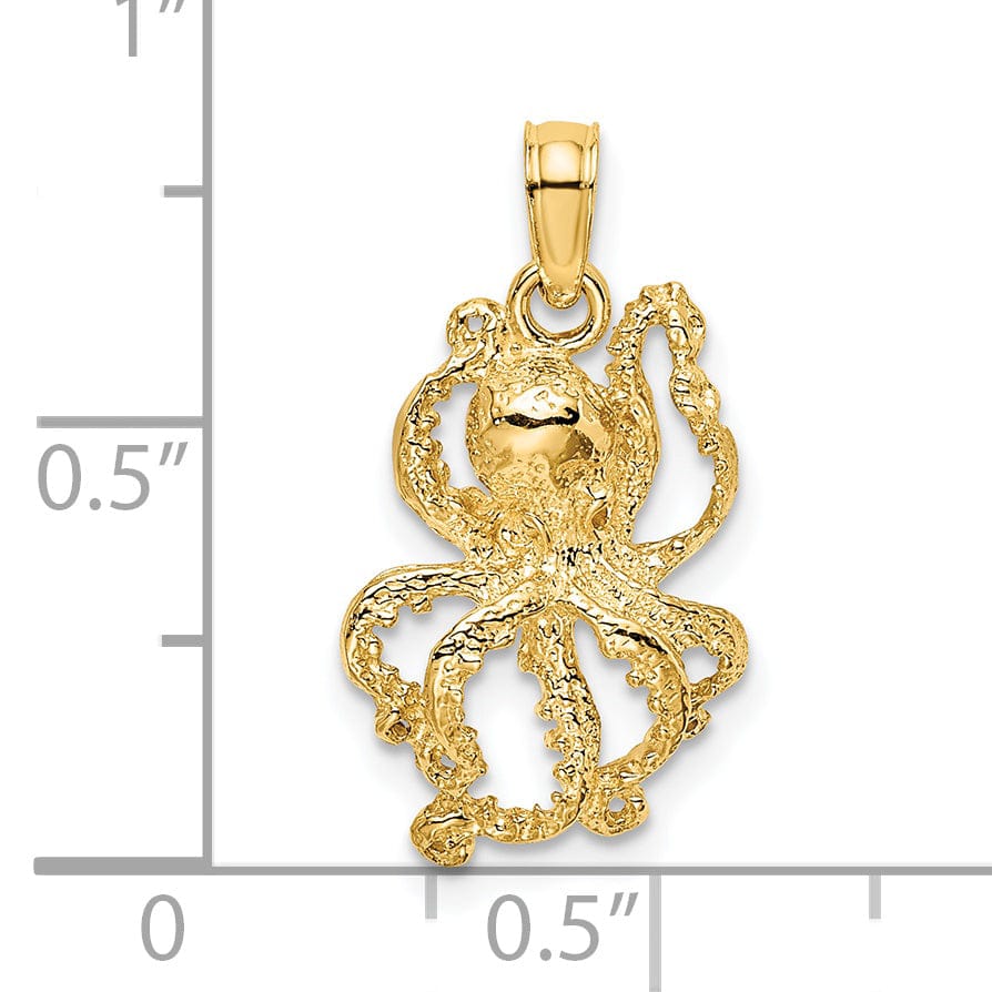 14K Yellow Gold Casted Textured Solid Polished Finish Textured Octopus Charm Pendant