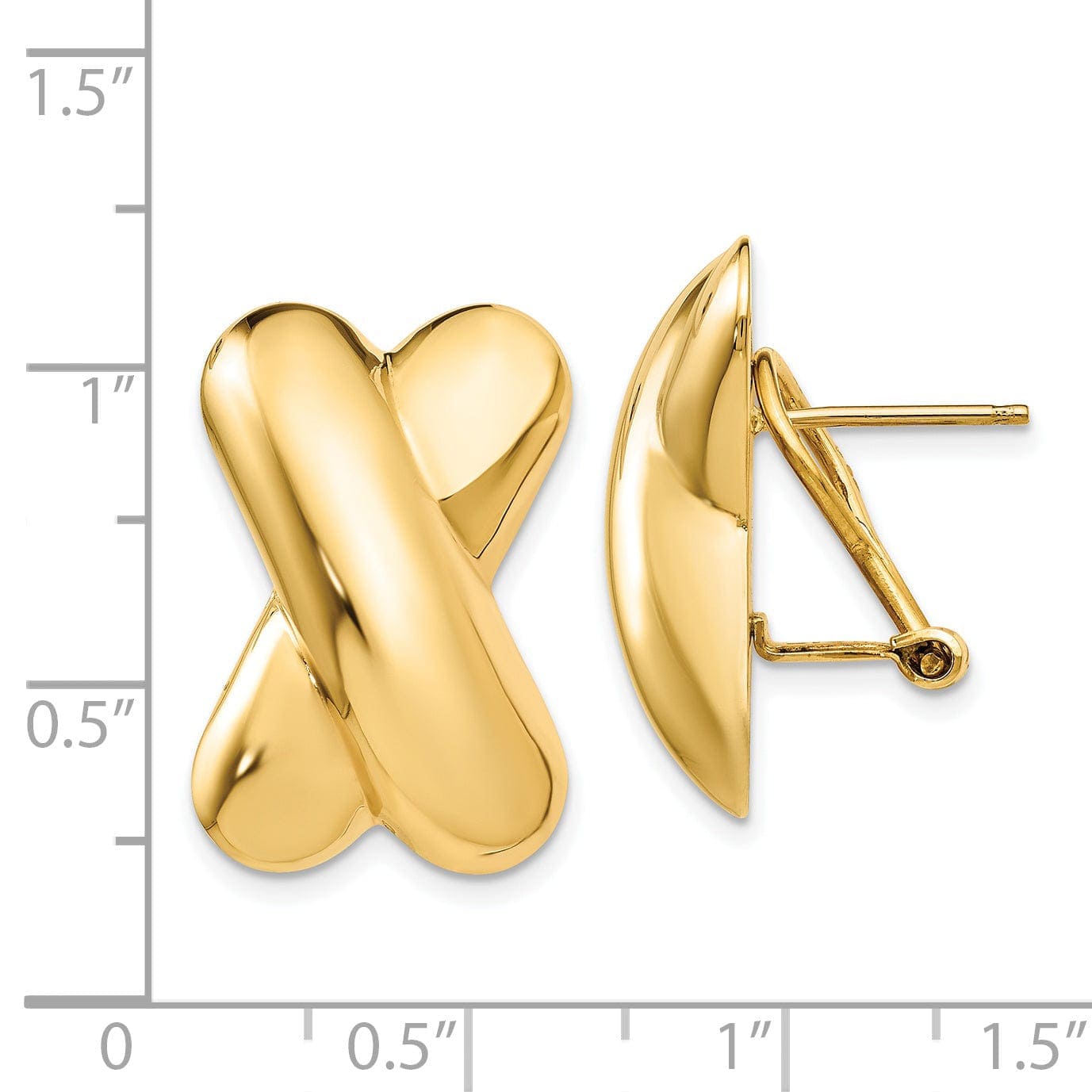 Whether you're dressing up for a special event or adding a touch of glamour to your everyday style, these 14k Yellow Gold Polished X Omega Back Post Earrings are sure to make a statement. Treat yourself or someone special to these stunning earrings and elevate any outfit with their timeless beauty.