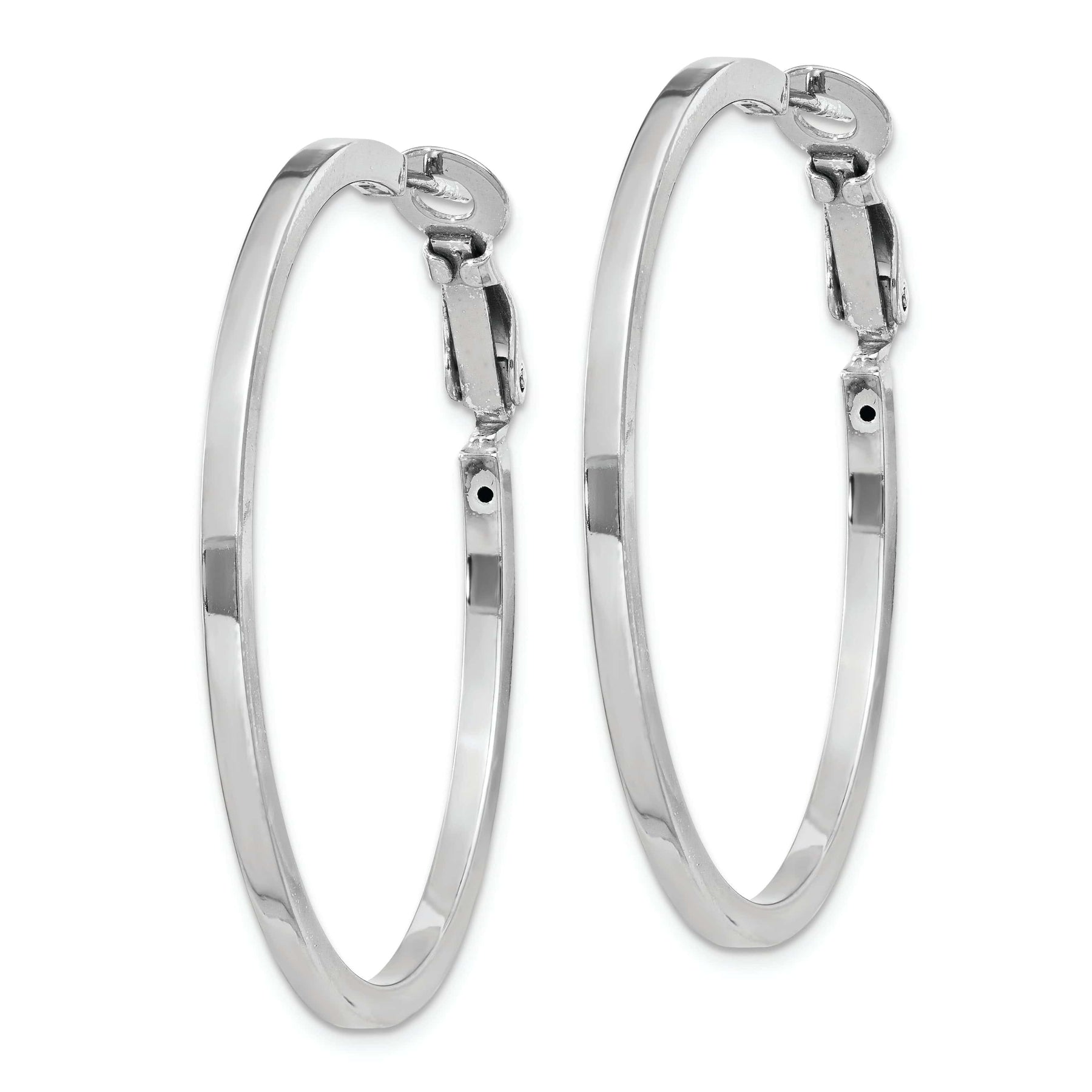 Upgrade your earring collection with these stunning Silver Hollow Omega Clip Back Hoop Earrings. Made from high-quality sterling silver with a rhodium-plated finish, these earrings are both durable and stylish. The hollow design adds a modern touch to the classic hoop earring style, making them perfect for both casual and formal occasions.