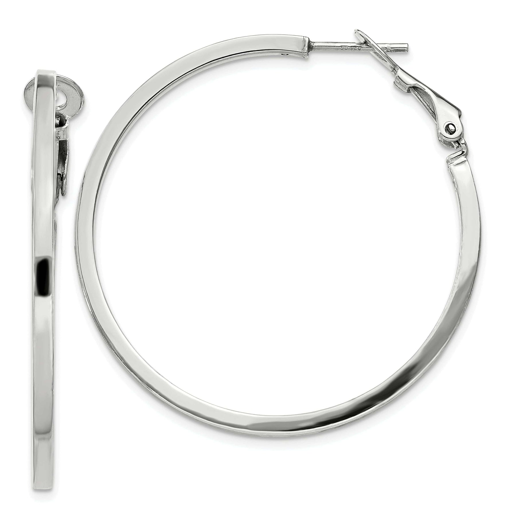 Silver Hollow Omega Clip Back Hoop Earrings