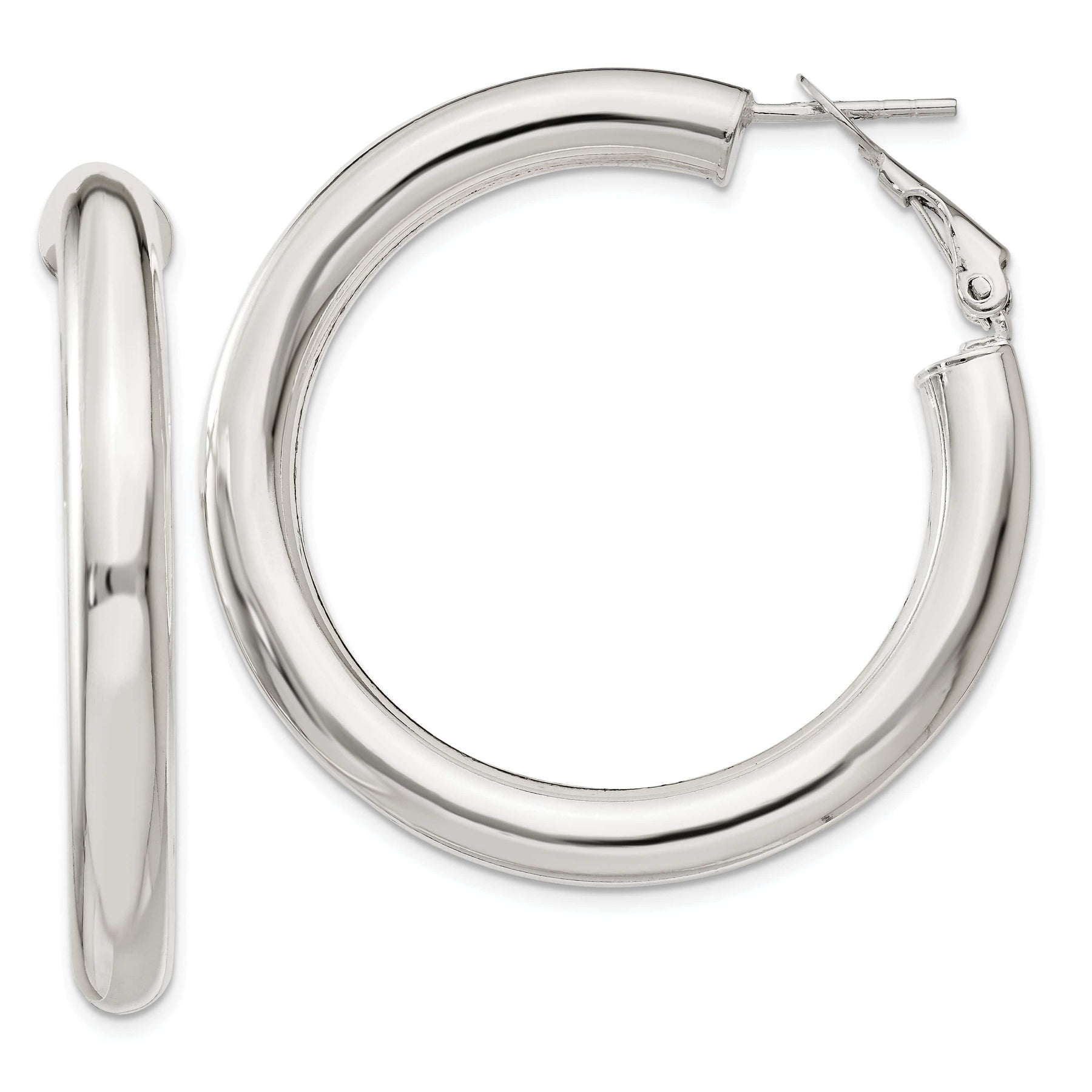 These stunning Sterling Silver Polished Finish Hollow Omega Back Hoop Earrings are the perfect accessory for any outfit. Crafted from high-quality sterling silver, these earrings feature a polished finish that gives them a sleek and sophisticated look.