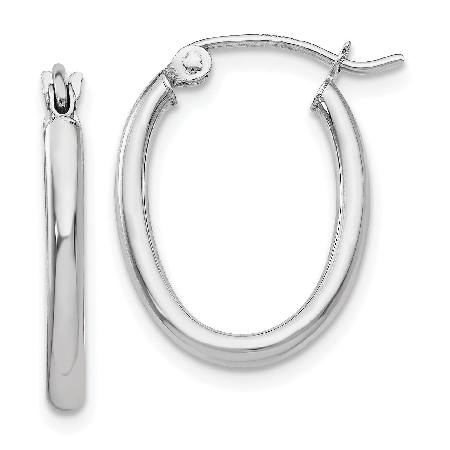 Lovely Rita's Earrings 14K White Gold Modern Polished 13.5 mm Oval Tube Hoop Earrings