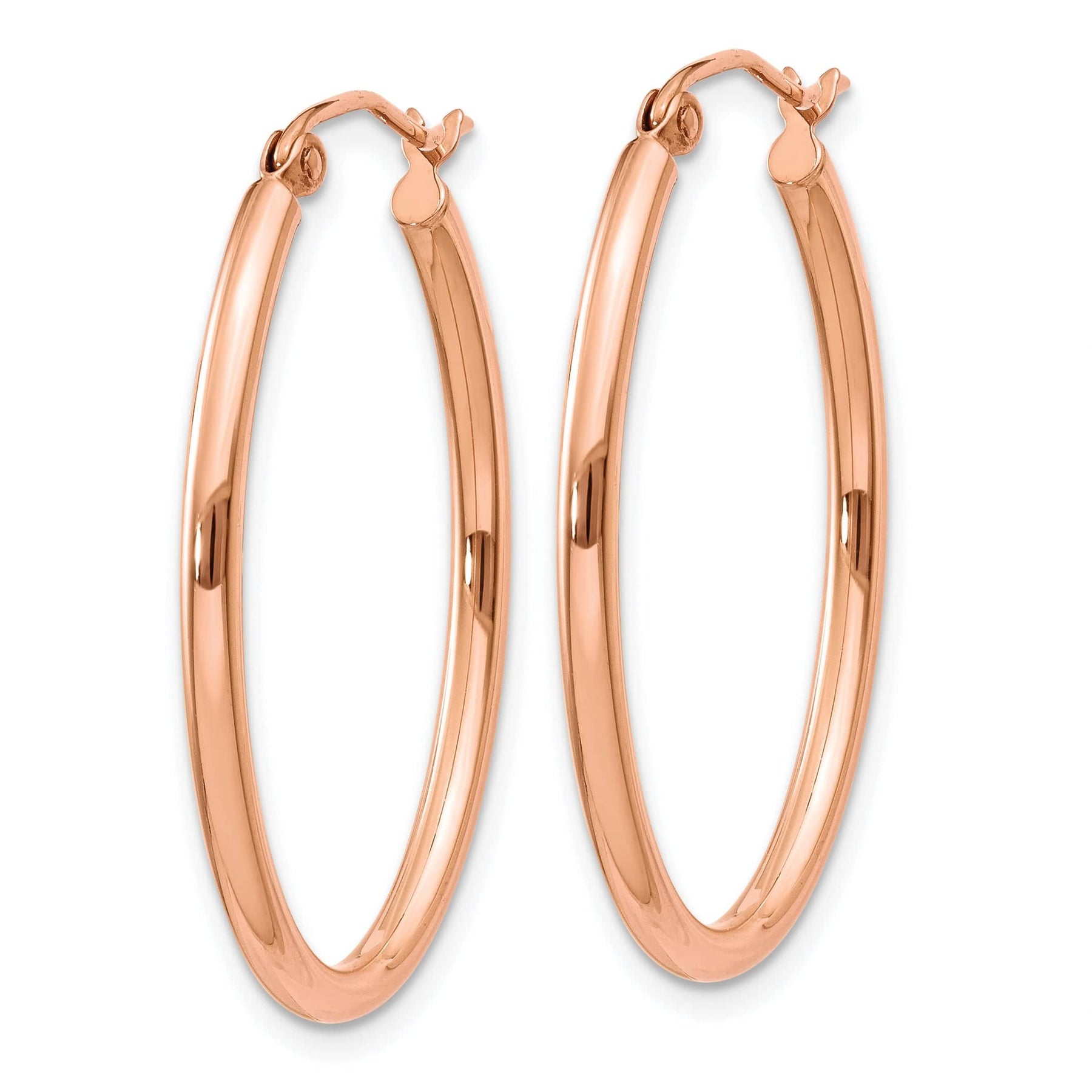 14K Rose Gold Chic Polished 21 mm Oval Tube Hoop Earrings