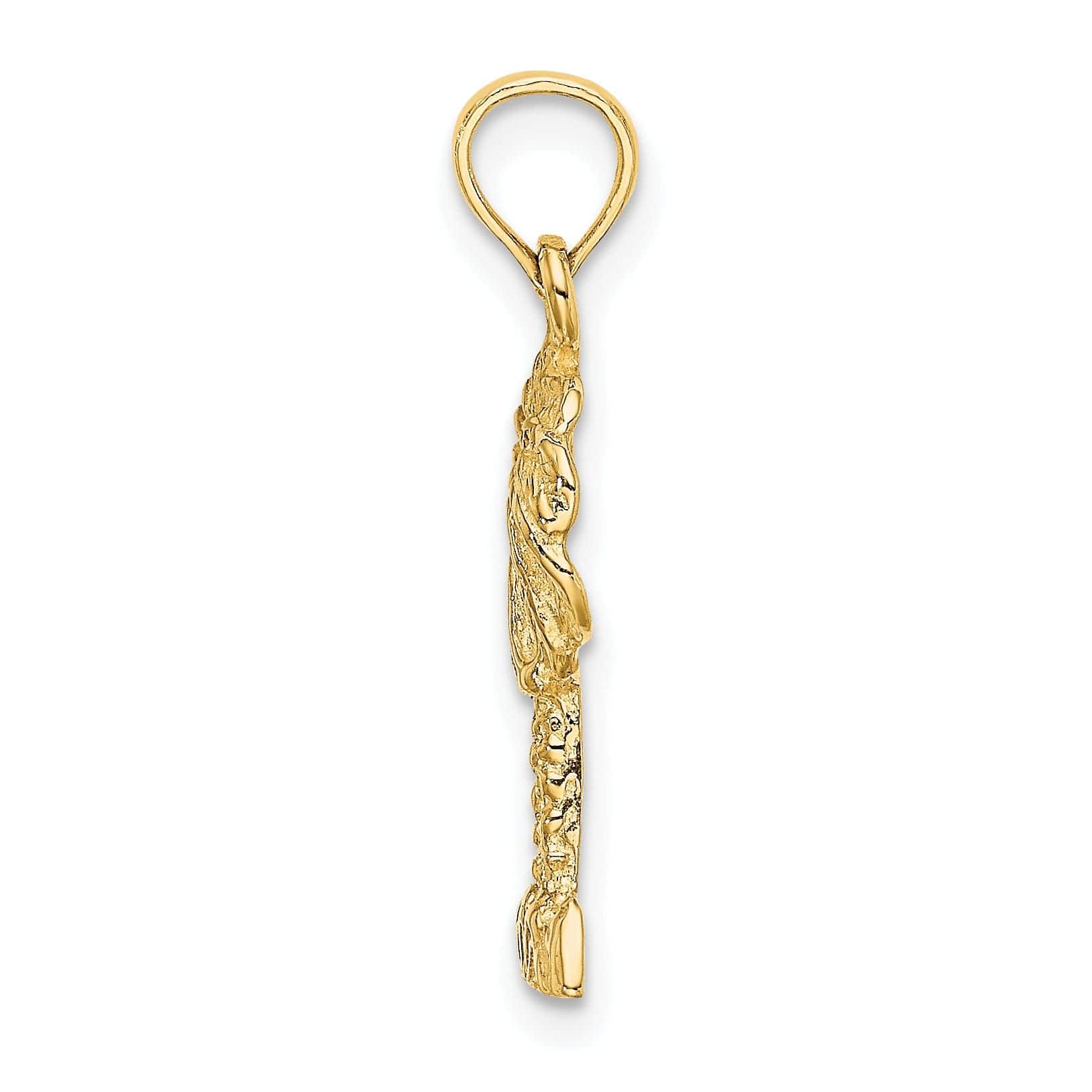 14K Yellow Gold Polished Texture Finish 2-Dimensional Concave Shape Palm Tree Charm Pendant