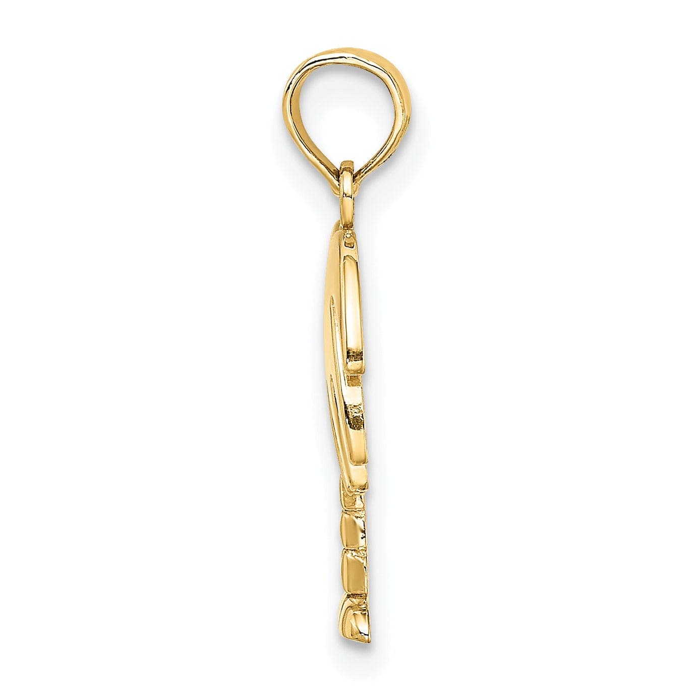 14K Yellow Gold Polished Texture Finish Charleston Palm Tree Charm Pendant