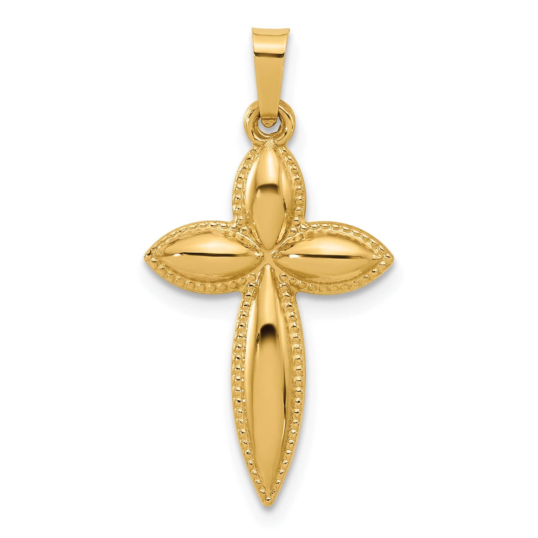 14K Yellow Gold Bold Polished Hollow Beaded Edge Passion Cross Pendant
