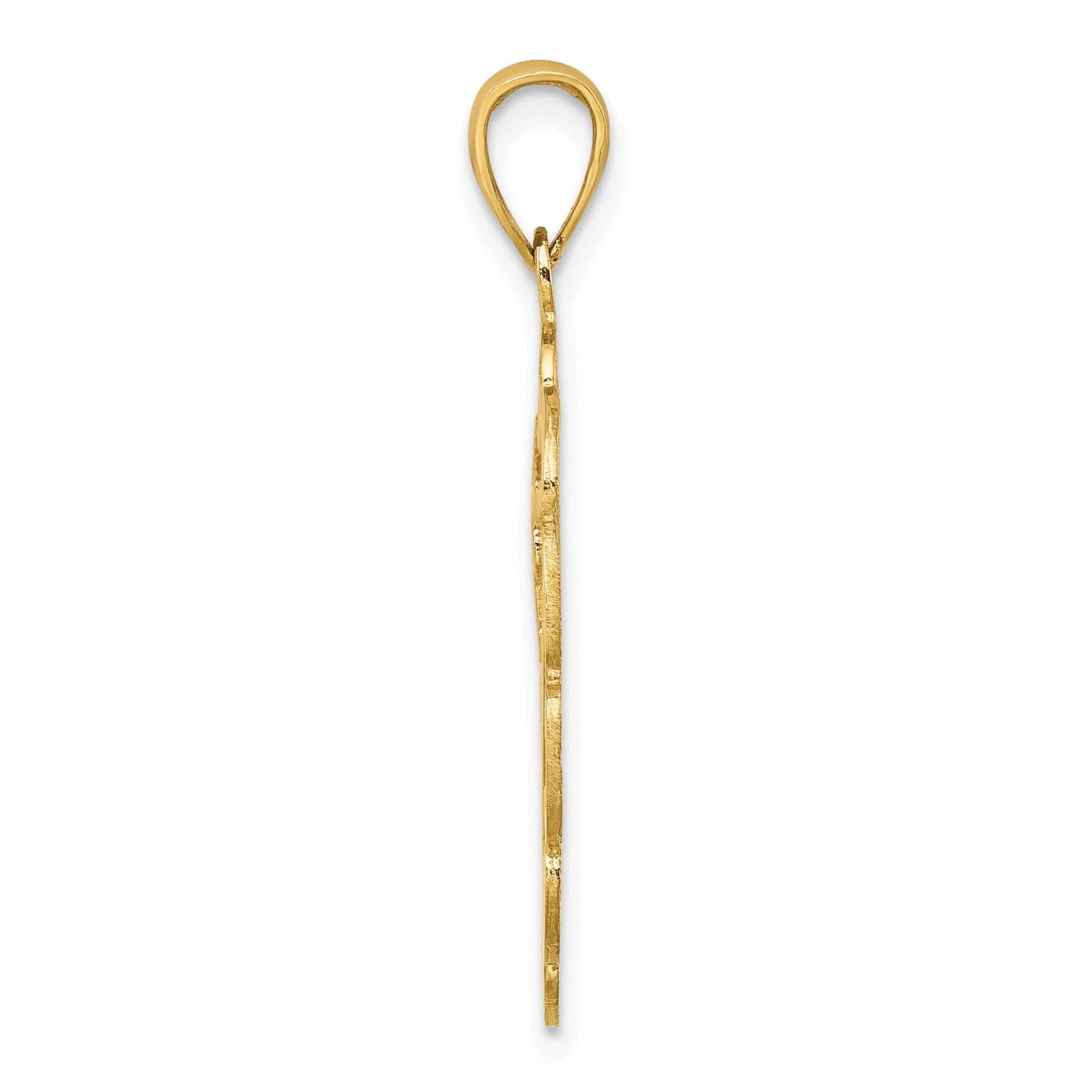 Add a touch of whimsical elegance to your jewelry collection with our stunning 14K Yellow Gold Polished Textured Finish Pelican In Circle Design Charm Pendant. Crafted from high-quality 14K yellow gold, this exquisite pendant features a beautifully detailed pelican in a circle design. The polished textured finish adds a touch of shine and sophistication to this unique piece.