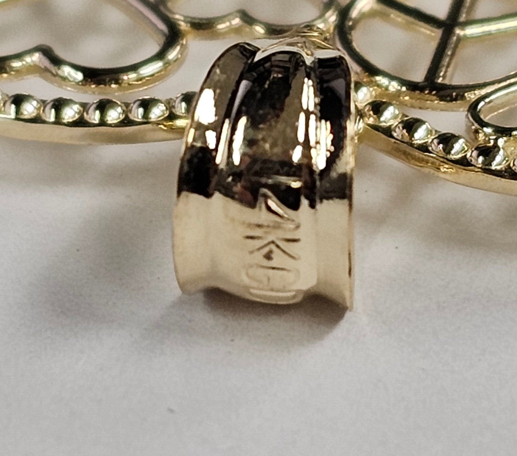 Whether you're looking to treat yourself or surprise a loved one, this 14k Yellow Gold Heart with Peace Signs Pendant is sure to make a meaningful and stylish addition to any jewelry collection. Give the gift of peace and love with this beautiful pendant that will be cherished for years to come.