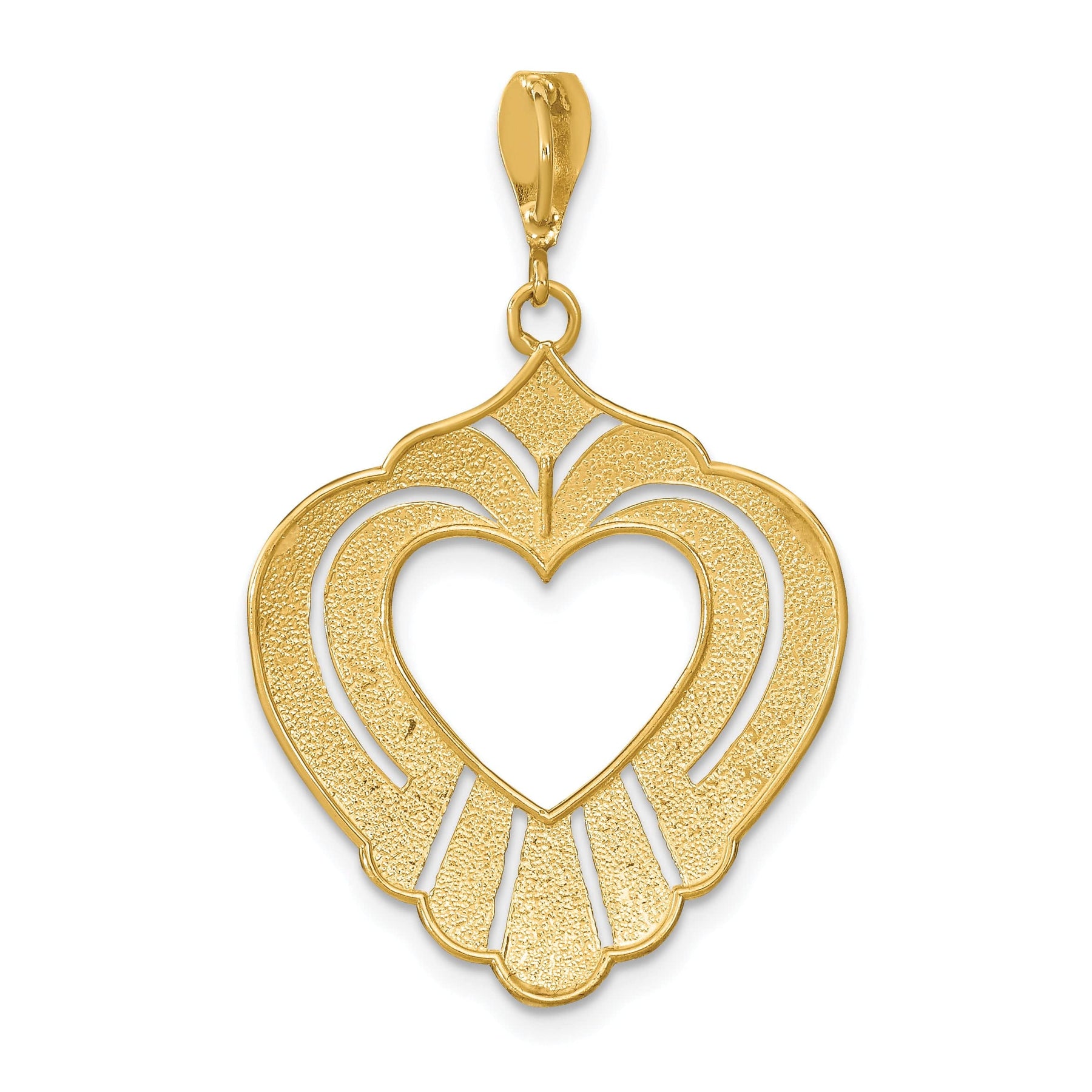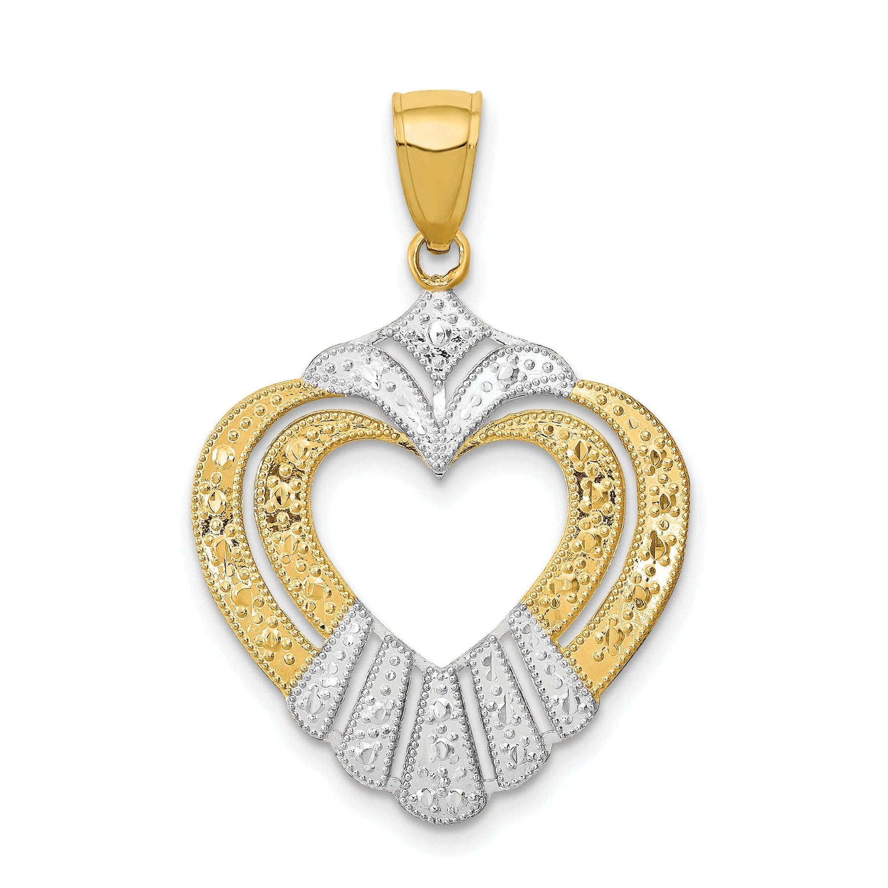 14k Yellow Gold Rhodium Cut-Out Heart Pendant