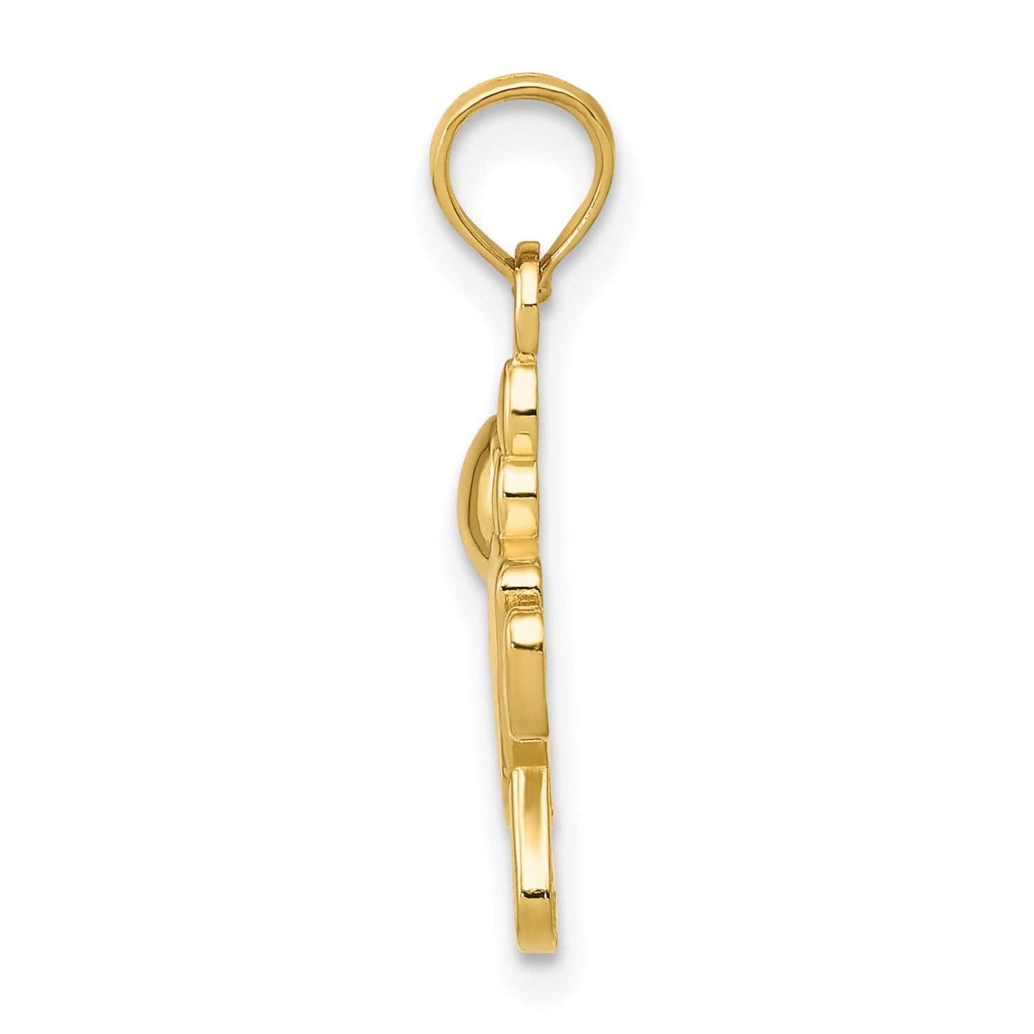Made from solid 14k yellow gold, this pendant is of high quality and durability. Its average weight of 0.69 grams makes it lightweight and comfortable to wear all day long. The width of the item measures 13mm, making it the ideal size for daily wear.