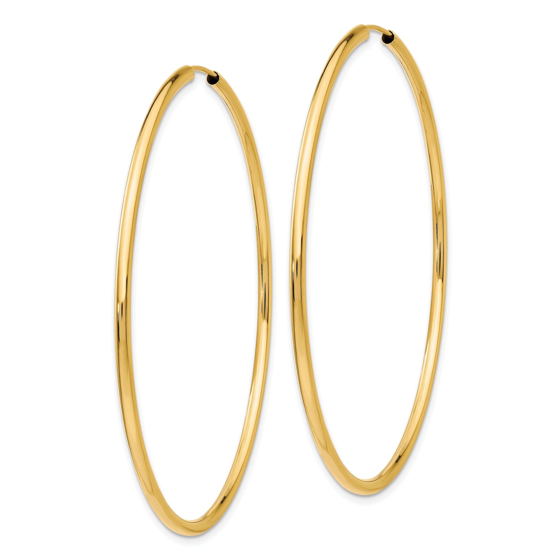 14k Yellow Gold Polished Endless Hoops 2mm x 60mm