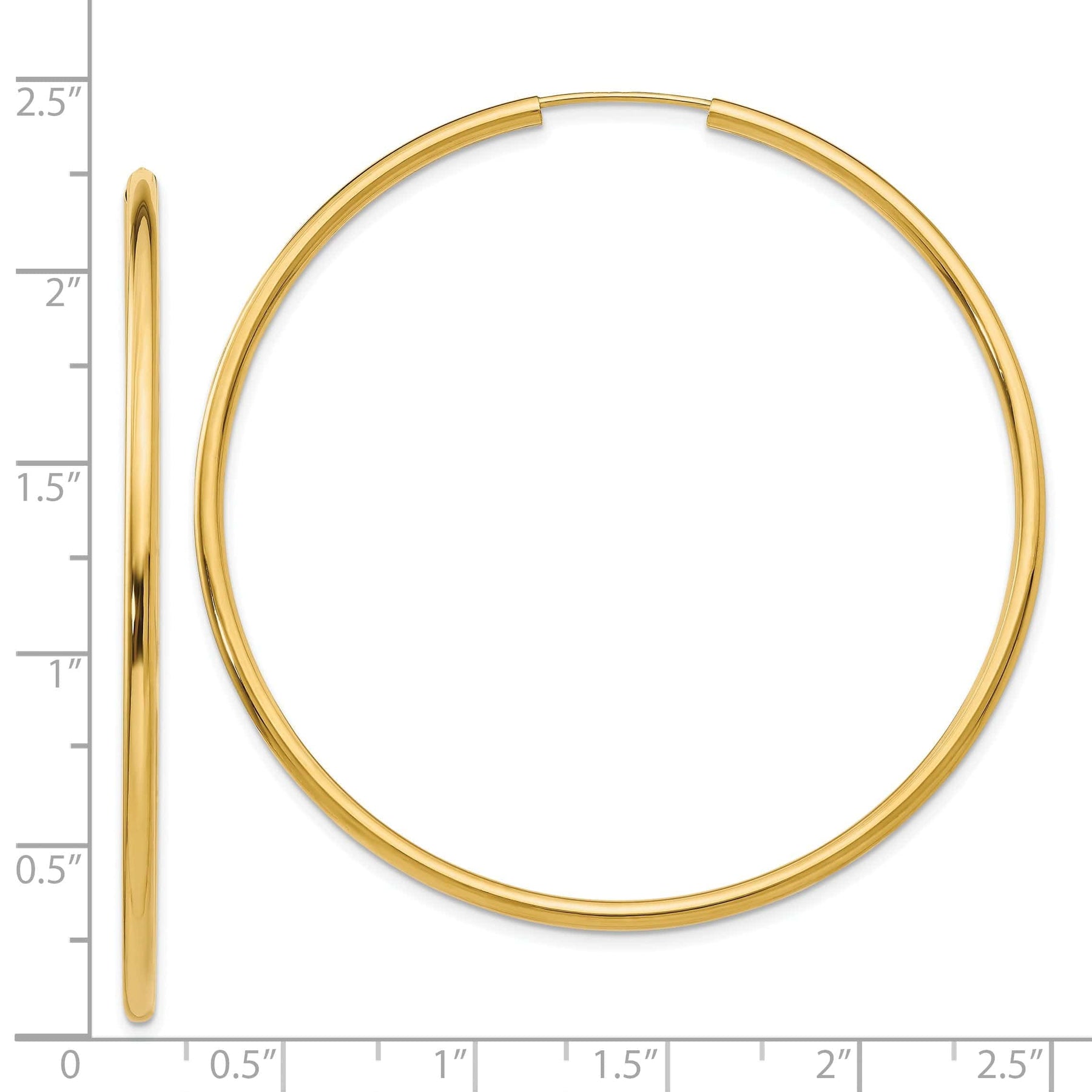 14k Yellow Gold Polished Endless Hoops 2mm x 54mm