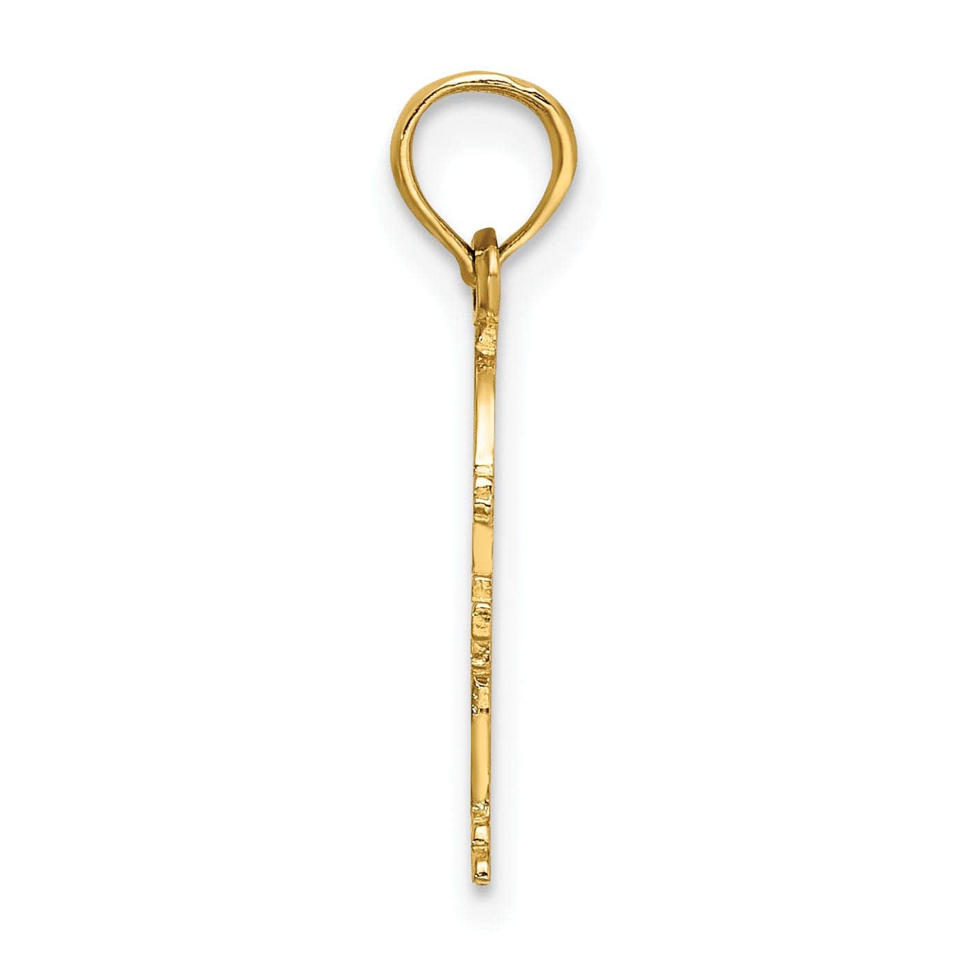 Made from high-quality 14K yellow gold, this pendant features a unique textured polished engraved finish, adding depth and dimension to the piece. The intricate engraving on the surface of the charm gives it a luxurious and radiant look, making it a standout addition to any ensemble.